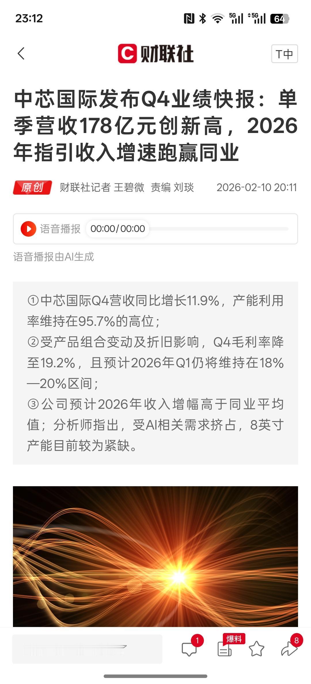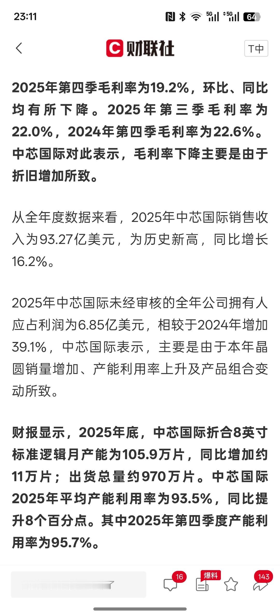重大利好消息,中芯国际2025年度收入创新高 折旧致毛利率承压 全年资本开支达81亿美元,中芯国际目前的利润创新高!证明整个芯片半导体行业需求量的增加,而推高了企业利润的增长。而台积电1月份的营收也创历史新高,主要还是AI芯片需求量的大增,导致了相关企业以及产业链的利润大幅增长。有这个增长趋势,还有很长的周期要走。也就是说,未来AI人工智能的持续发展,会带动整个芯片半导体行业持续增长利润!