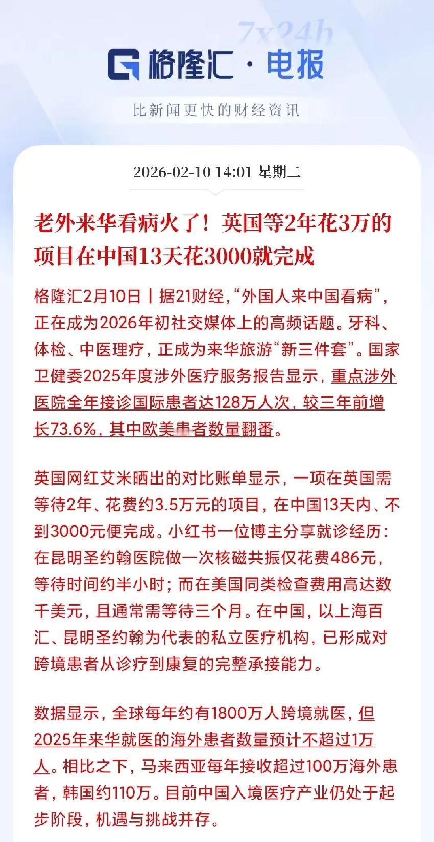 [石化]英国老外来中国看病,三万项目三千完成?这不是“挤占我国医疗资源”吗?[思考]仔细一看,原来到的上海私立医院,那就没问题了,大概这“三万”“三千”的单位都是美元或英镑吧,只能说——还是盎撒医院,会挣钱啊?[奸笑] 至于这小编,多少有点“标题党”[灵光一闪]