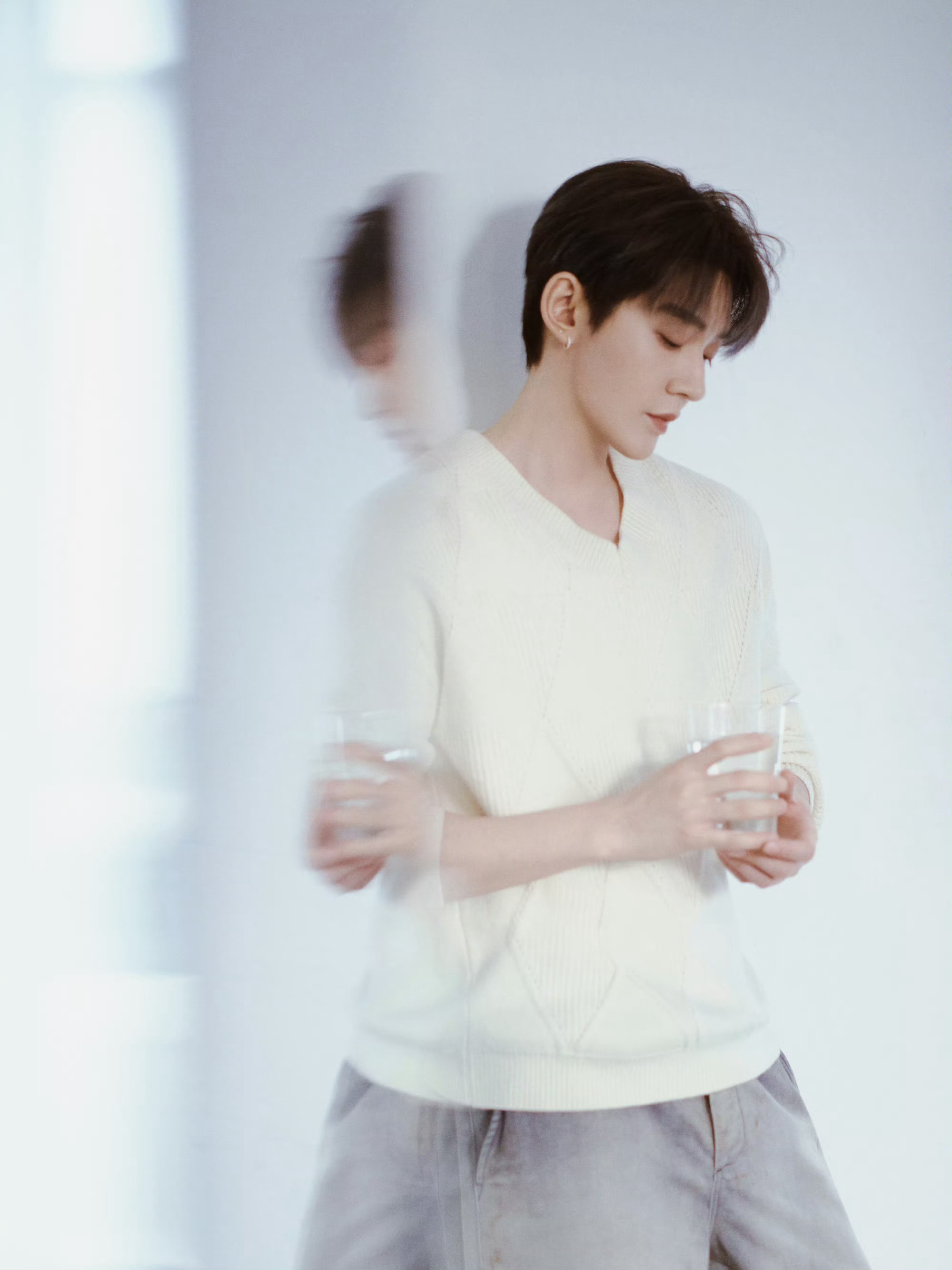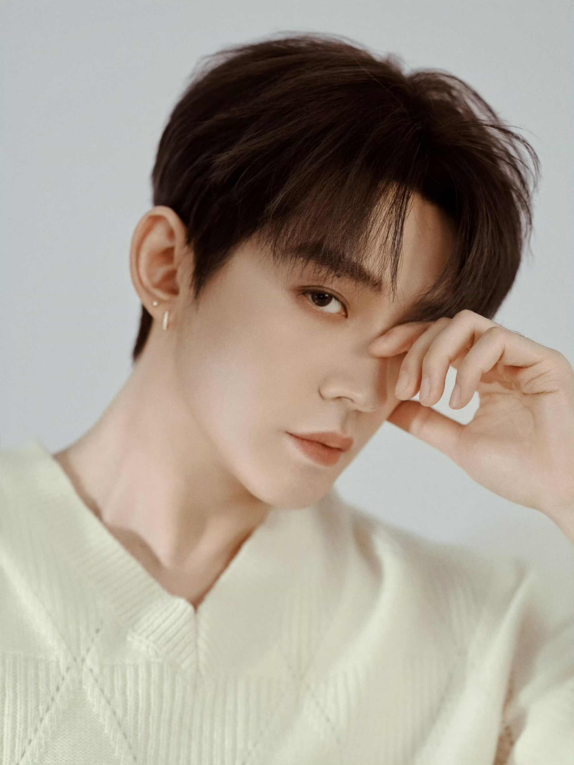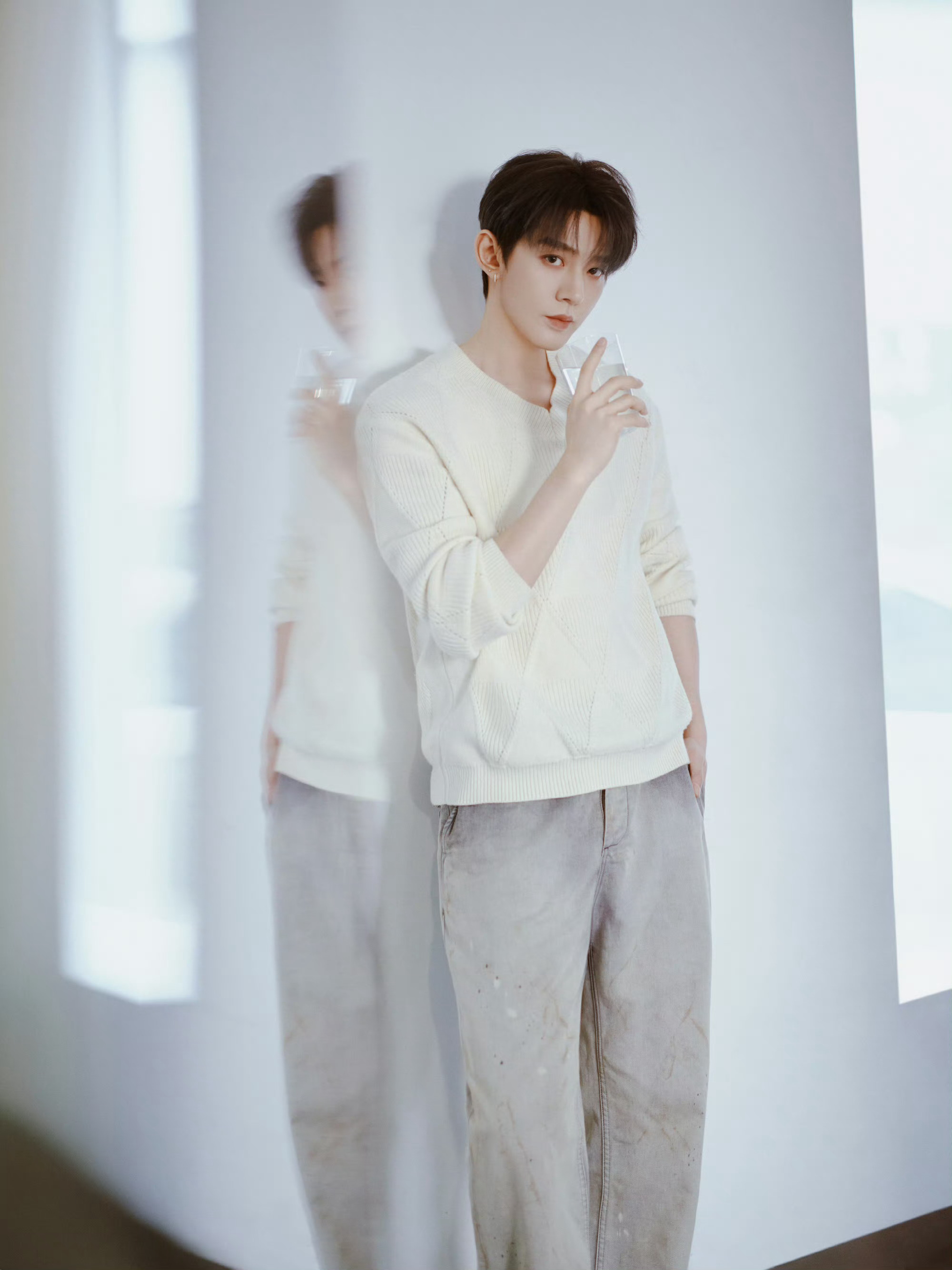 邓为 今日造型图集,白毛衣配牛仔裤,简单舒适的温暖搭配,俊逸温润的早春格调。📷🫧🧶 风格大赏 时尚灵感解读