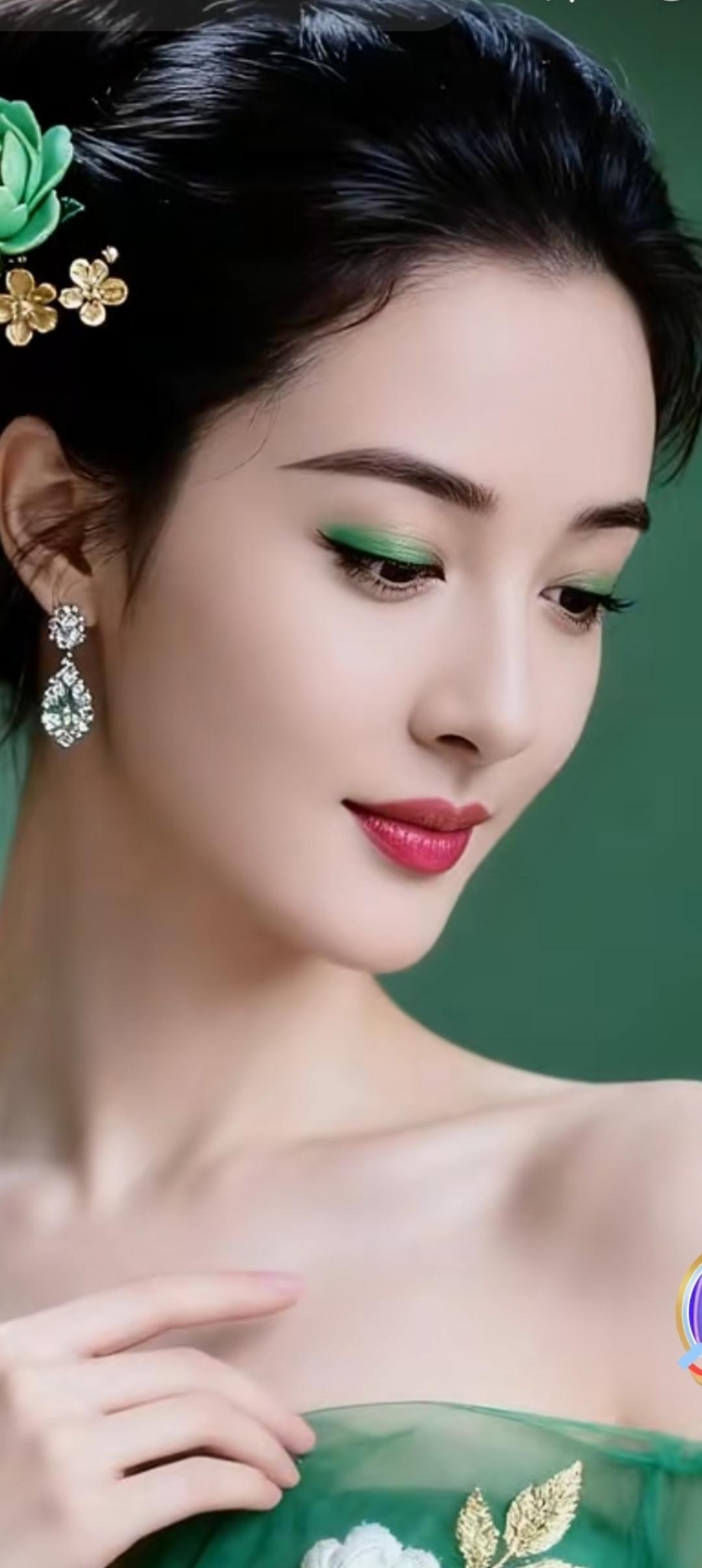 惊艳的东方美人,精致的妆容和优雅的服饰,让人沉醉其中。