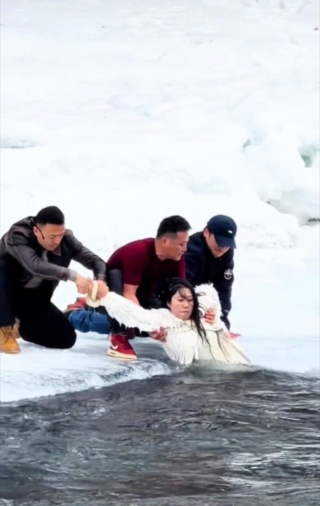 千万不要为了拍照穿越警戒线,谢谢救人者,好人一生平安 2月10日,在新疆喀纳斯河花楸谷附近,一对母女掉入河流之中,所幸被一群当地的司机师傅救起。据悉,母女俩已经安全上岸。据当地通报称,两母女越过警戒线在河边拍照时,小孩不慎落水被卡在冰层下面,其母亲下水营救,把女儿推出去 【喀纳斯一对母女因拍照越过警戒线而落水,当地司机游客见状立马营救,救人者:第一时间想着救人,其他都没有多想】