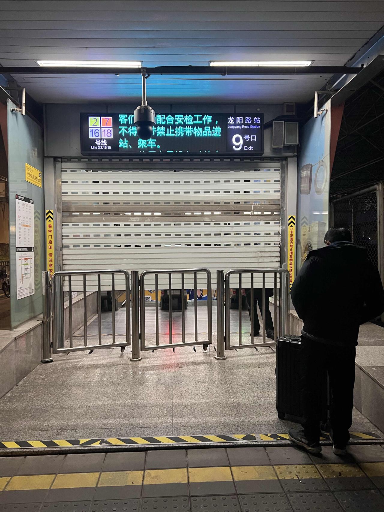 往虹桥方向的地铁二号线龙阳路第一班是5:20开,而地铁开门的时候是5:10分,不