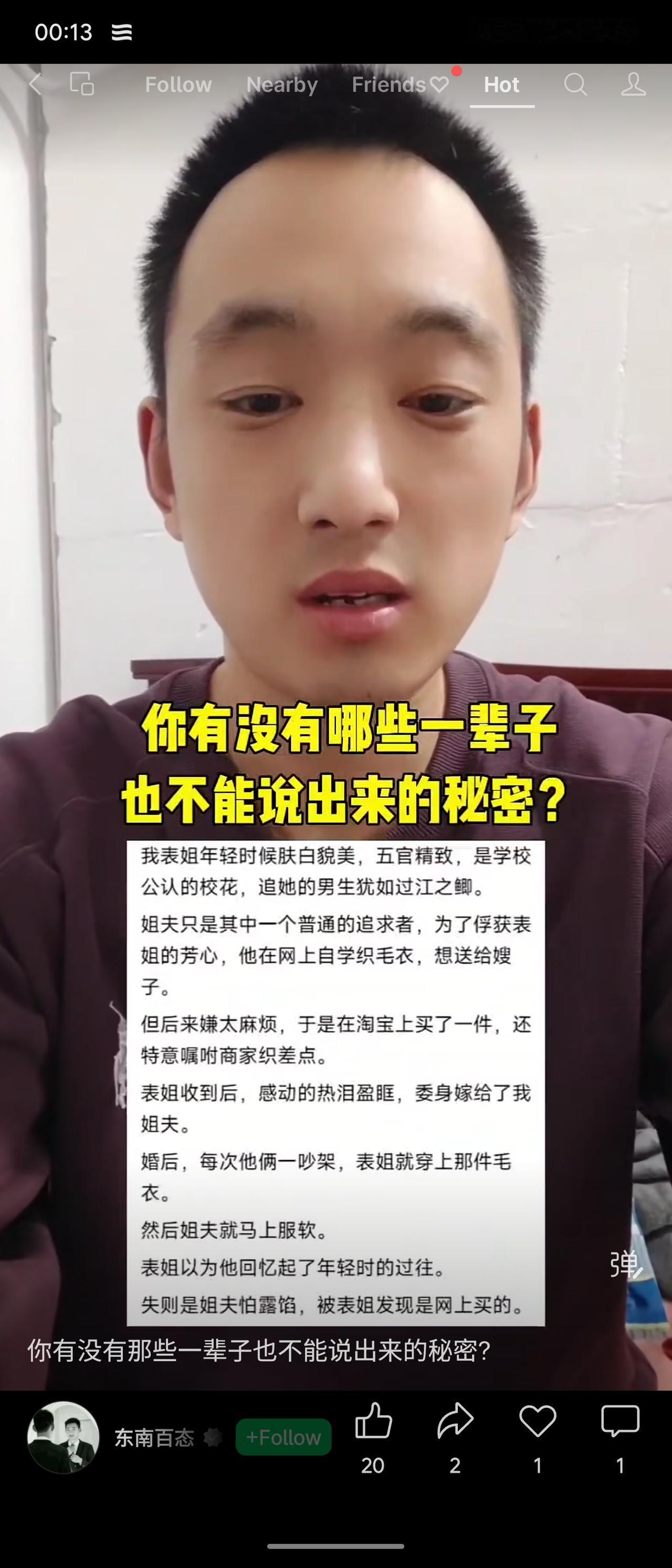 姐夫为追校花表姐,网购毛衣冒充手织并叮嘱“织差点”。表姐感动下嫁。婚后一吵架,表姐就穿此衣,姐夫立刻服软——他并非回忆往昔,而是怕网购秘密暴露。