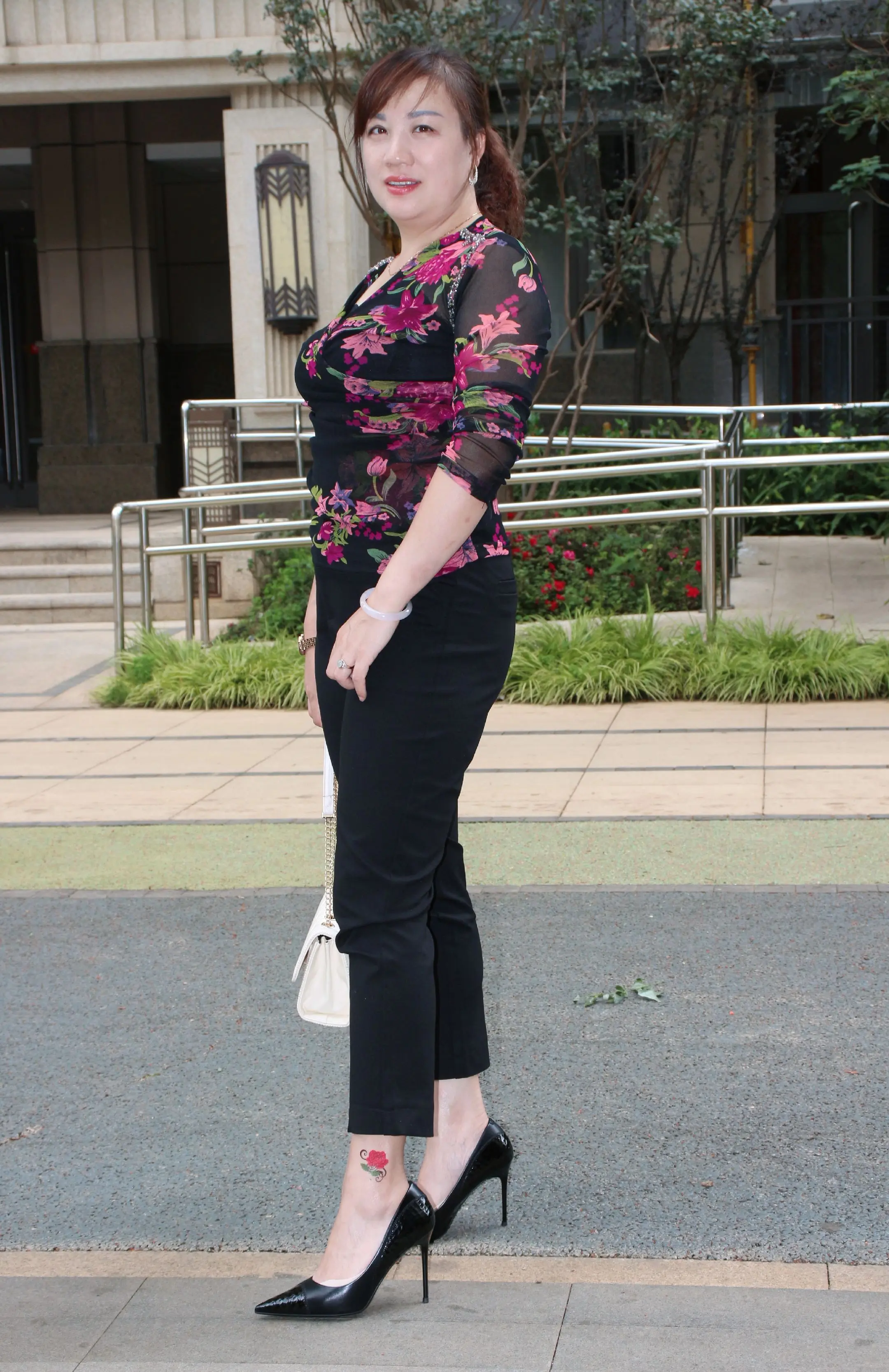 街拍美女好身材,高端大气上档次的穿搭分享街拍风采浅色职业高跟鞋你有吗?街拍