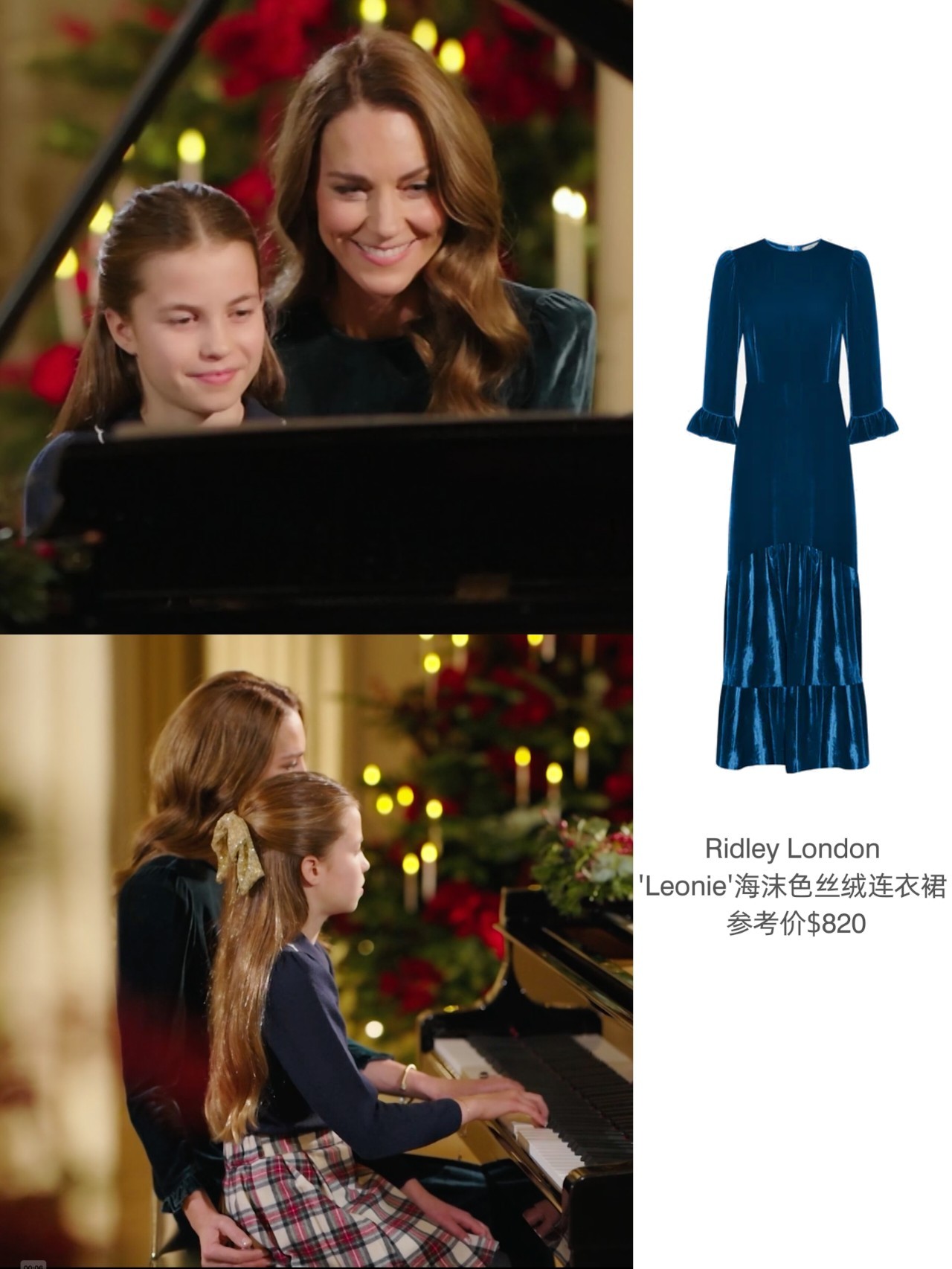 去年圣诞季和闺女Lottie钢琴合奏期间网页链接所穿的是来自英国本土品牌Ridley的丝绒连衣裙,今年1月底访问北爱尔兰网页链接的咖色绉纱阔腿裤则是来自Edeline Lee的~