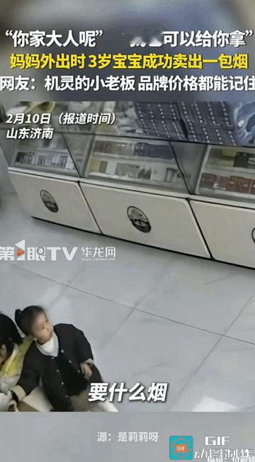小娃娃不仅有胆量,而且沟通能力也好强。 耳熏目染。娃娃从小就学起了,娃娃她居然还知道“粗的还是细的?” 烟!不能卖给未成年人,也没说未成年人不能卖烟。哈哈!