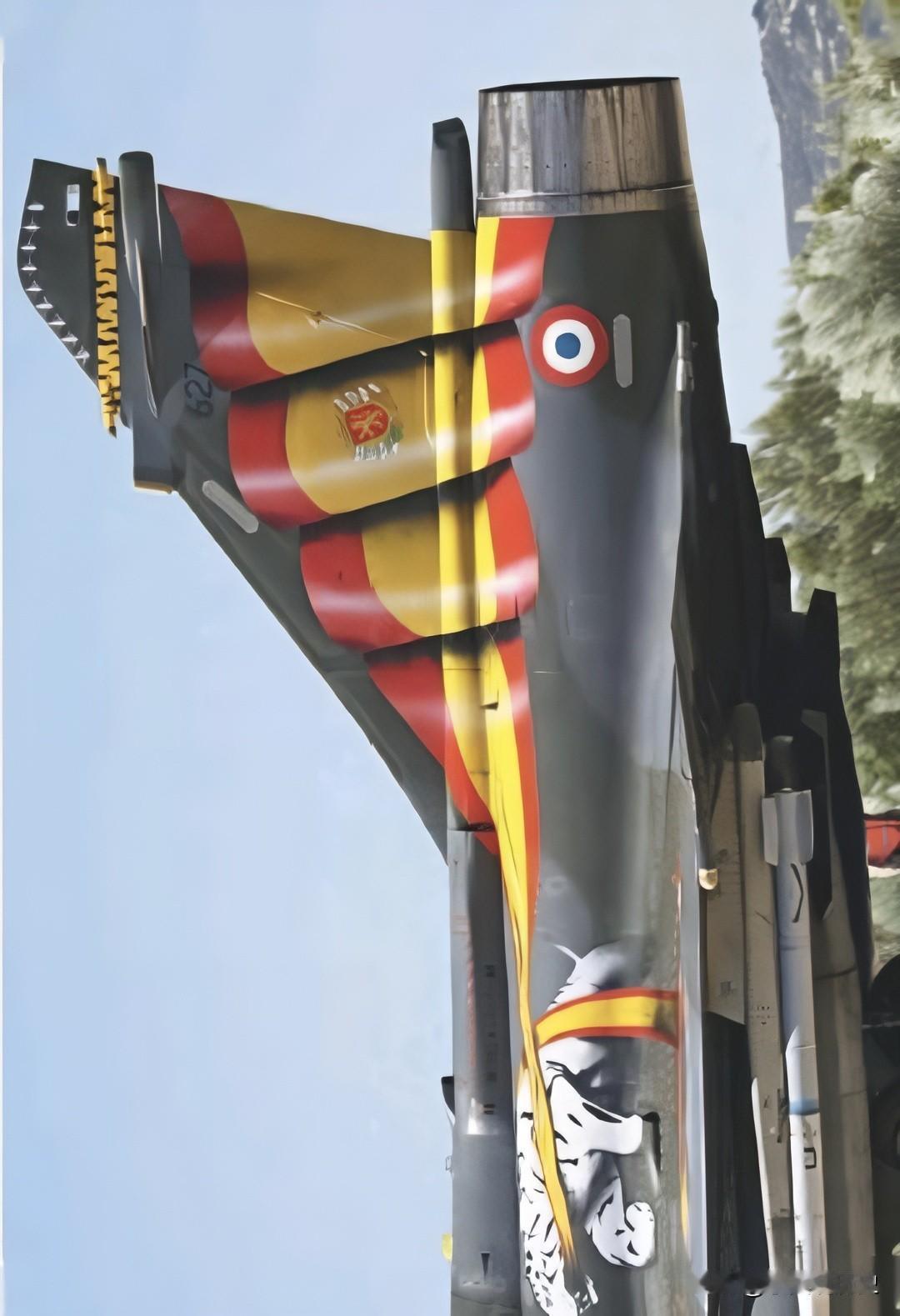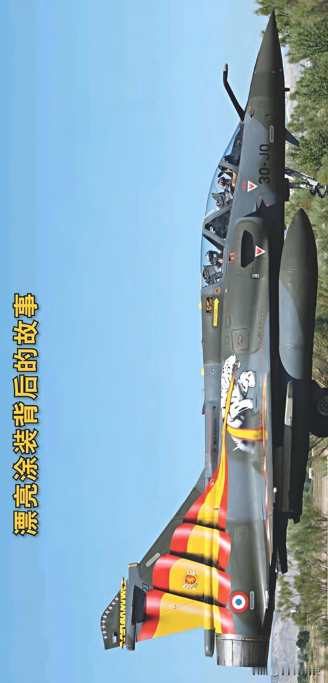 漂亮涂装背后的故事 涂装独特的法国空军“幻影”2000D,前后座飞行员向观众挥手致意。 “幻影”2000D由执行核打击任务的“幻影”2000N 改进而来,同样也为双座型,主要使用常规武器执行远程精确打击任务,可携带的武器包括 AASM、MBDA和“风暴阴影”等导弹。 该机涂装为一头白色老虎口衔一条象征西班牙国旗的红黄色绶带。 从细节图可以看出,整体涂装漂亮醒目,其机尾部分绶带的立体效果也非常好。 注意绶带上的站立狮子盾形纹章,这是本次北约老虎会主办城市萨拉戈萨市的徽标。 法国空军以此向东道主表示敬意。 带定位晒今日生活 我的今日状态:😁轻松愉快 我这里的天气:☀️晴天
