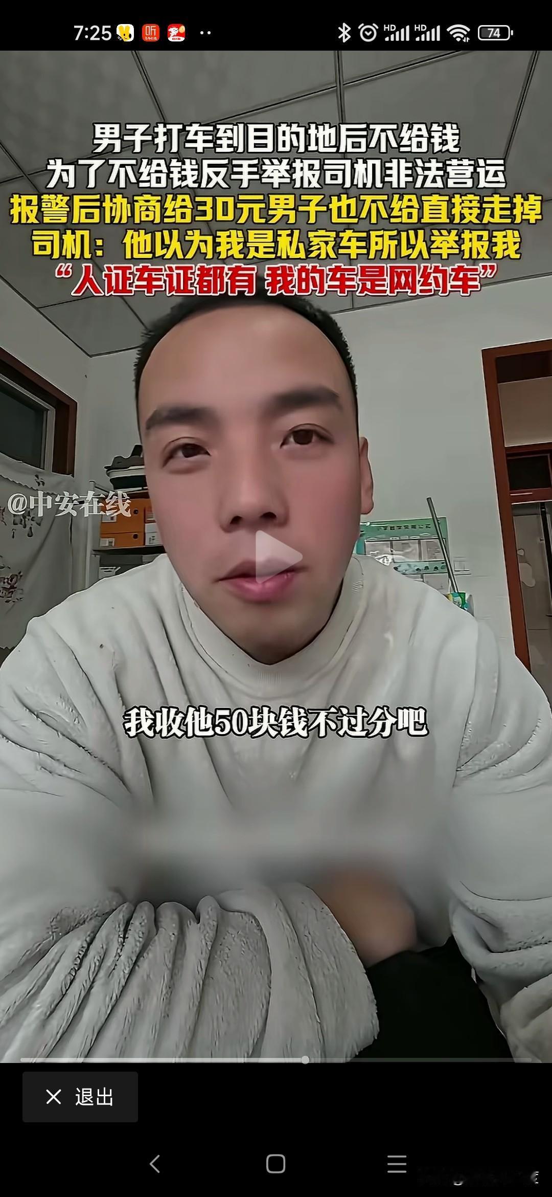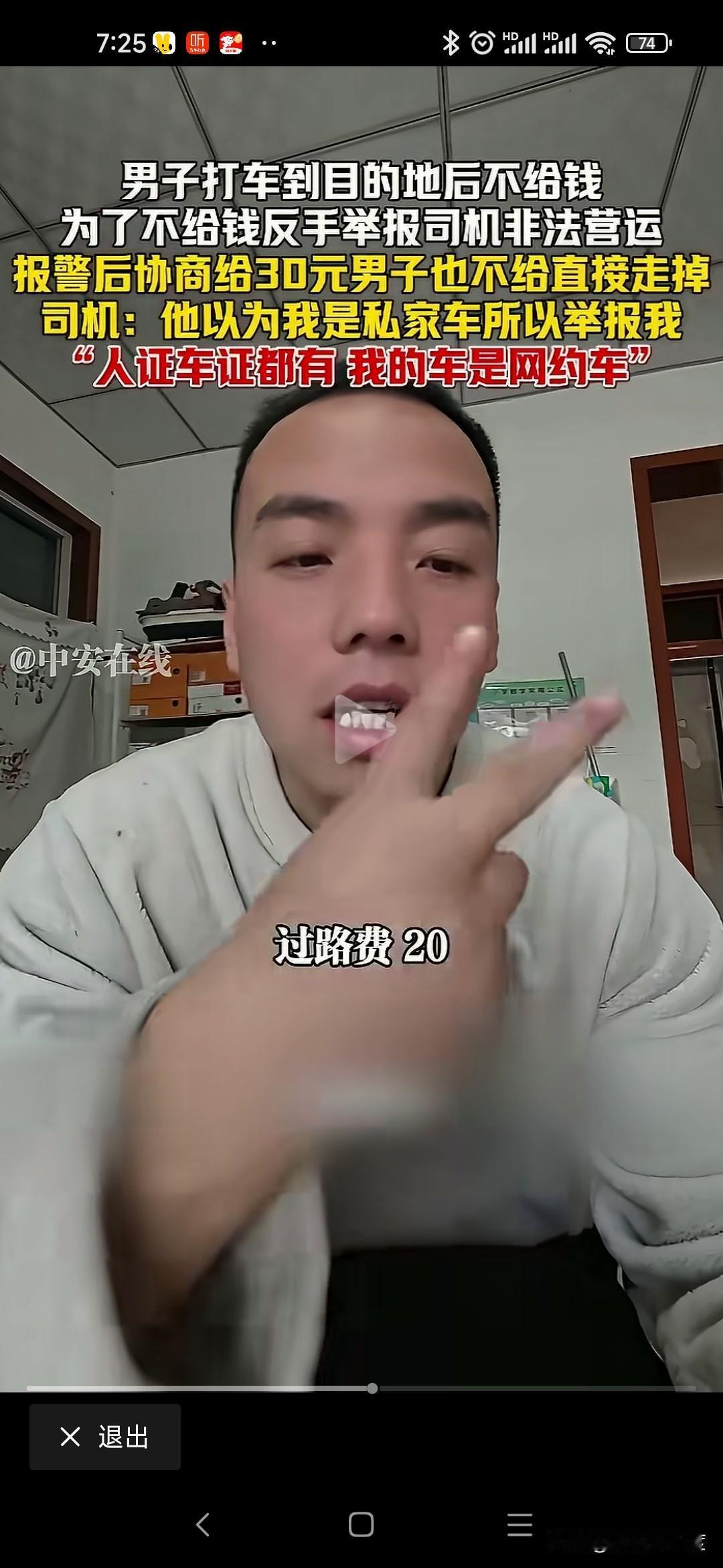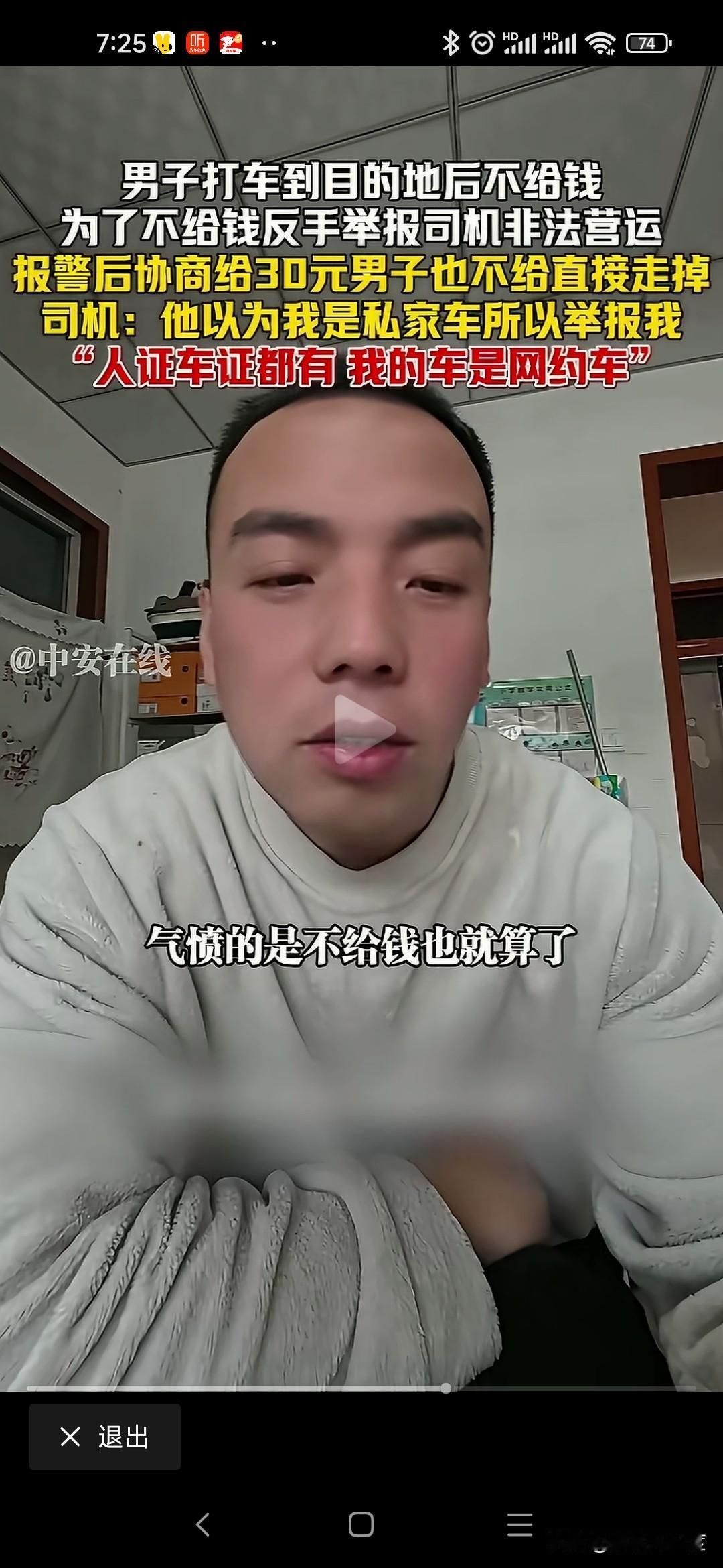 山西男子打车不给钱恶人先告状 山西男子打车从阳城到晋城东站70公里路程,过路费20运费30司机收50元。 男子耍无赖不给,不给钱还举报司机非法运营。 司机是正规网约车,人证车证运营证齐全,也没有多要钱,乘客就耍无赖不给钱。 司机拦着他不让进站,报警处理还打电话举报司机非法运营。 僵持40分钟就是不给钱,警察调和不给50给30行吧,我不给转身进站坐高铁了。 无奈司机把这个视频传到网上,让大家评判一下! 这种事时有发生,咱也不能听信一人之言,特意百度地图查看一下,顺风车58一位,其他上百元。 就算这个抠搜男打的顺风车,人家要50不贵吧,怎么还能无理搅三分不给呢? 是山西人就这么能算计会过?还是你一直这样耍无赖举报威胁司机逃单?你家的财富就这样积累的吗? 警察最会和稀泥,打车给钱天经地义,凭什么他不给钱就让走,说要的多你可以投诉我举报我,为什么不给钱就放他走,和稀泥执法最可恨,助长这样无赖的嚣张气焰。 这次助阵司机,支持司机维护自己的正当权益!