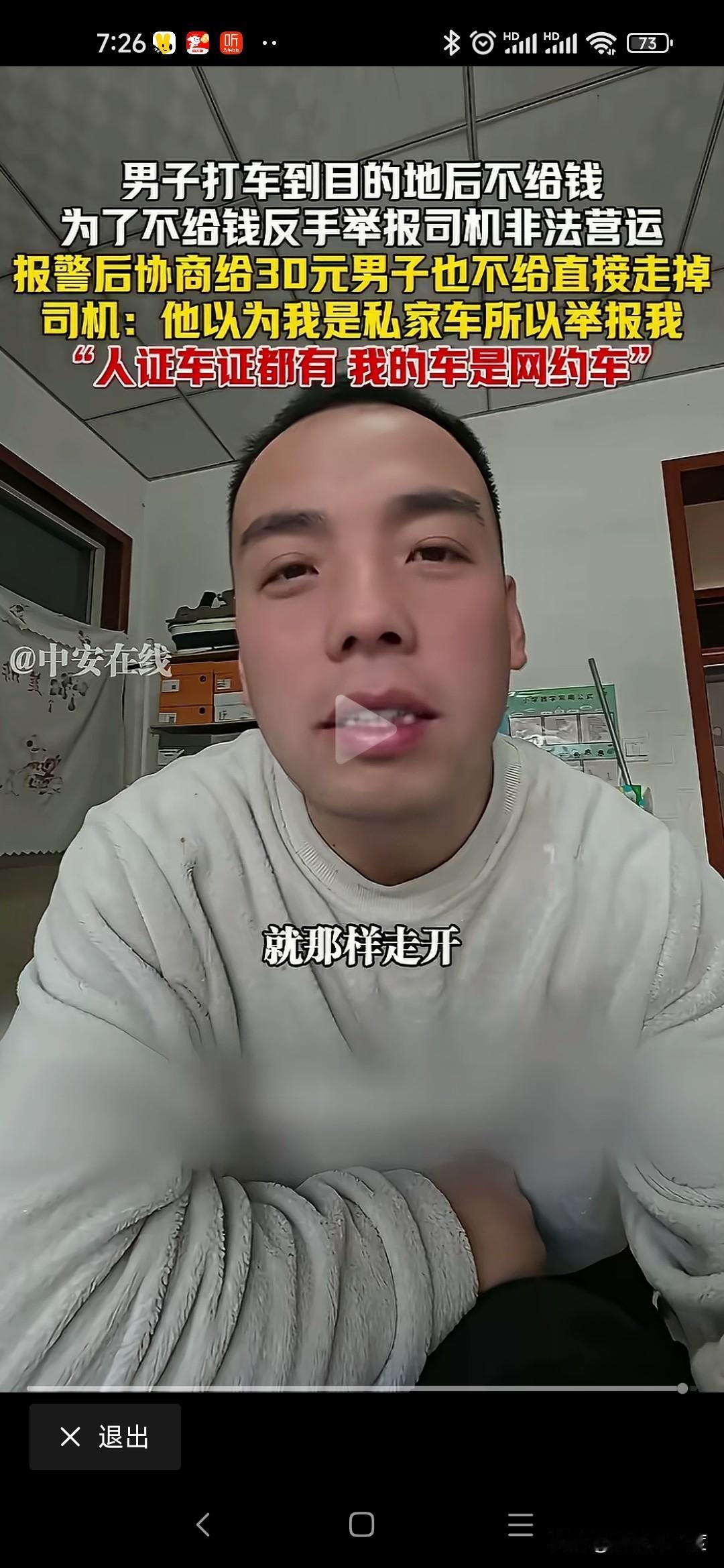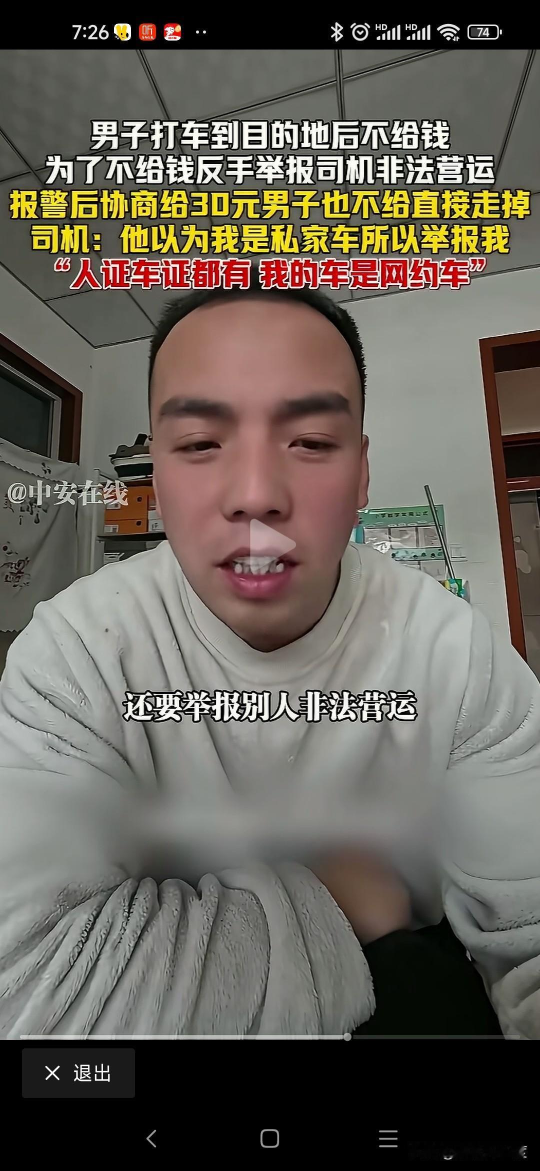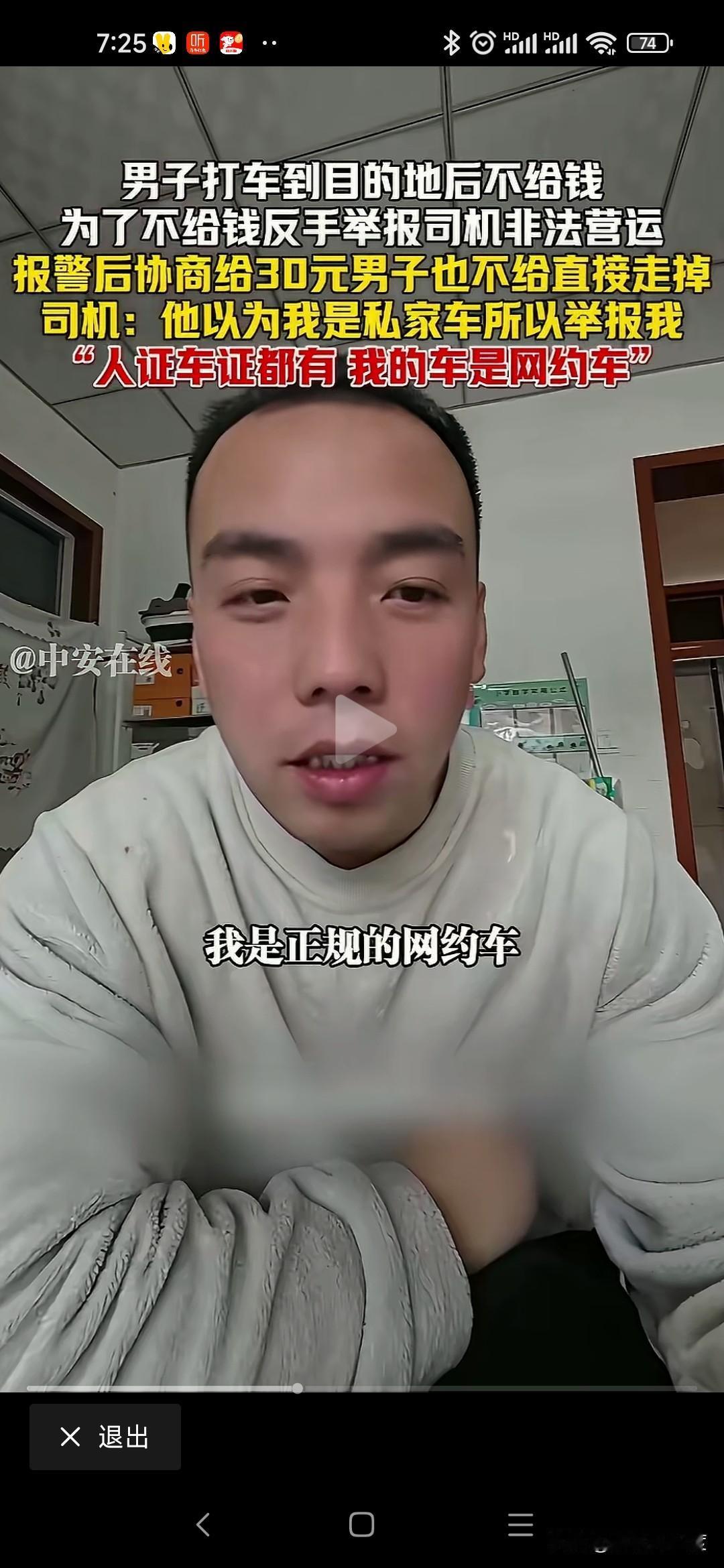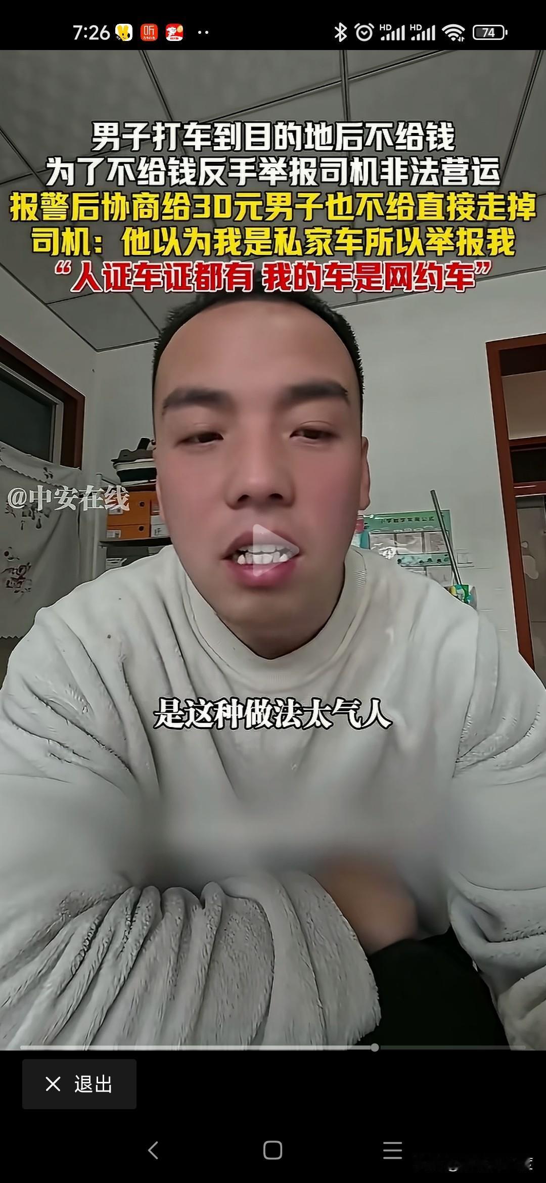 山西男子打车不给钱恶人先告状 山西男子打车从阳城到晋城东站70公里路程,过路费20运费30司机收50元。 男子耍无赖不给,不给钱还举报司机非法运营。 司机是正规网约车,人证车证运营证齐全,也没有多要钱,乘客就耍无赖不给钱。 司机拦着他不让进站,报警处理还打电话举报司机非法运营。 僵持40分钟就是不给钱,警察调和不给50给30行吧,我不给转身进站坐高铁了。 无奈司机把这个视频传到网上,让大家评判一下! 这种事时有发生,咱也不能听信一人之言,特意百度地图查看一下,顺风车58一位,其他上百元。 就算这个抠搜男打的顺风车,人家要50不贵吧,怎么还能无理搅三分不给呢? 是山西人就这么能算计会过?还是你一直这样耍无赖举报威胁司机逃单?你家的财富就这样积累的吗? 警察最会和稀泥,打车给钱天经地义,凭什么他不给钱就让走,说要的多你可以投诉我举报我,为什么不给钱就放他走,和稀泥执法最可恨,助长这样无赖的嚣张气焰。 这次助阵司机,支持司机维护自己的正当权益!