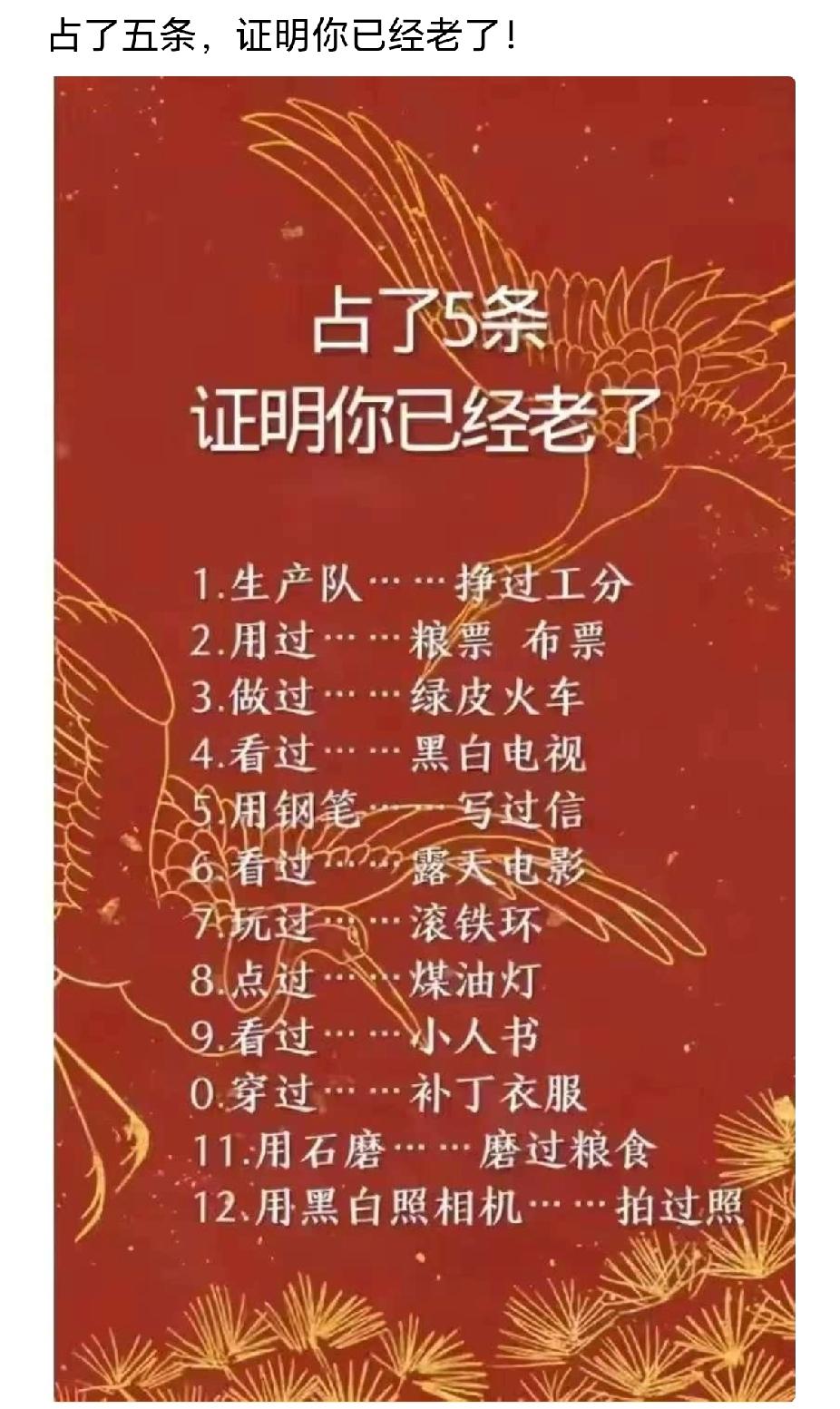 我敢打赌!这里占了五条以上,证明你已经老了。