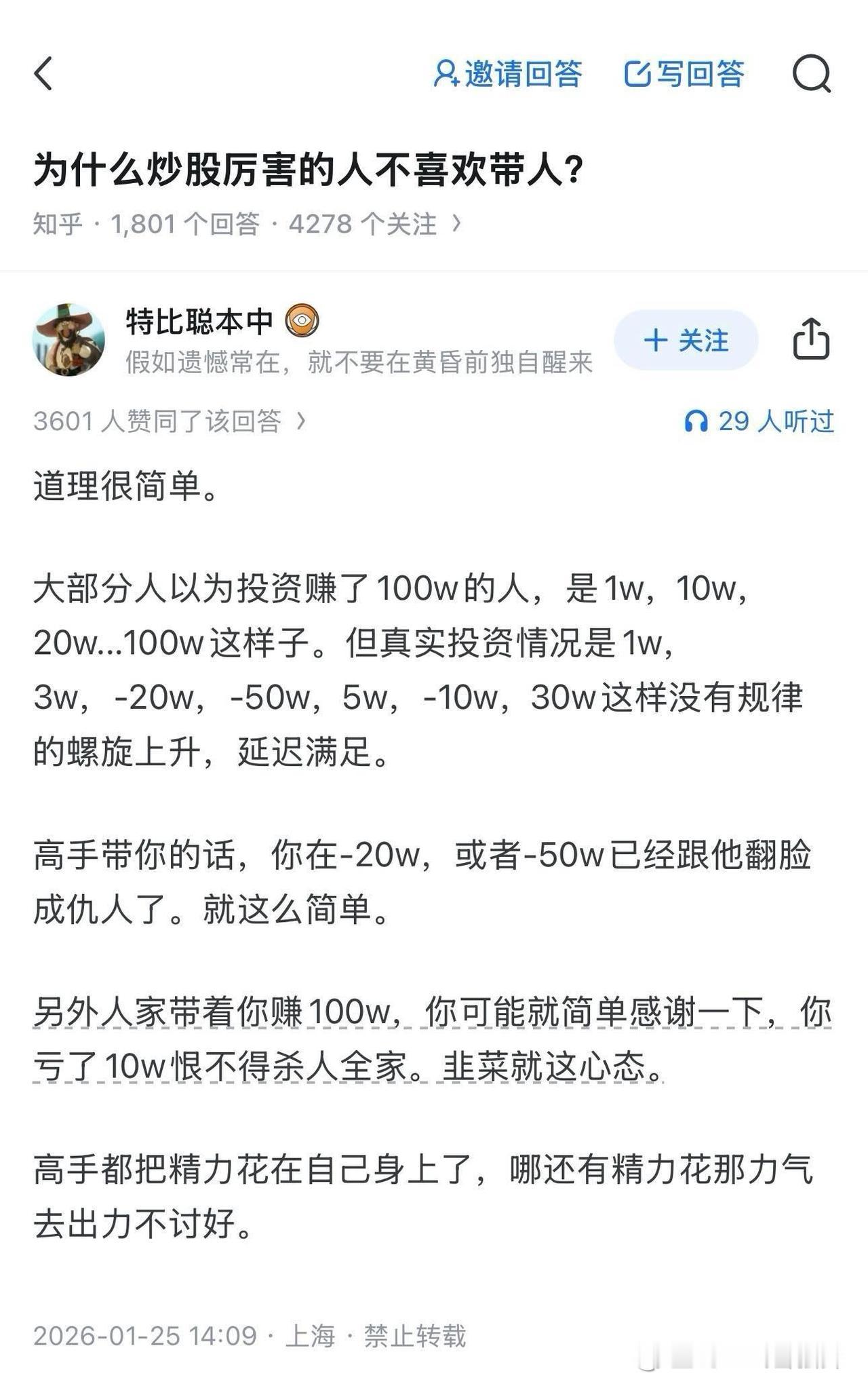 炒股厉害的人,都不带人。