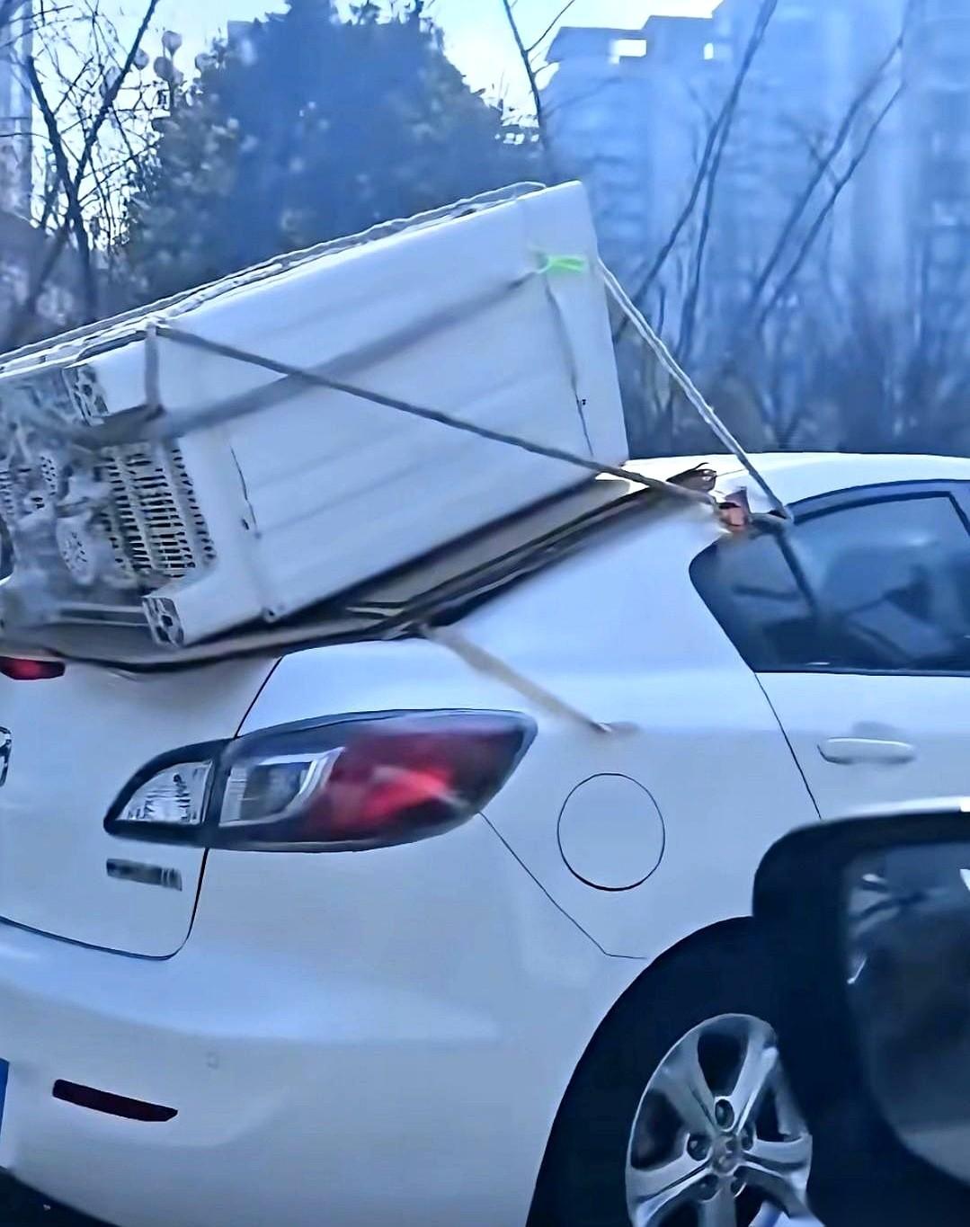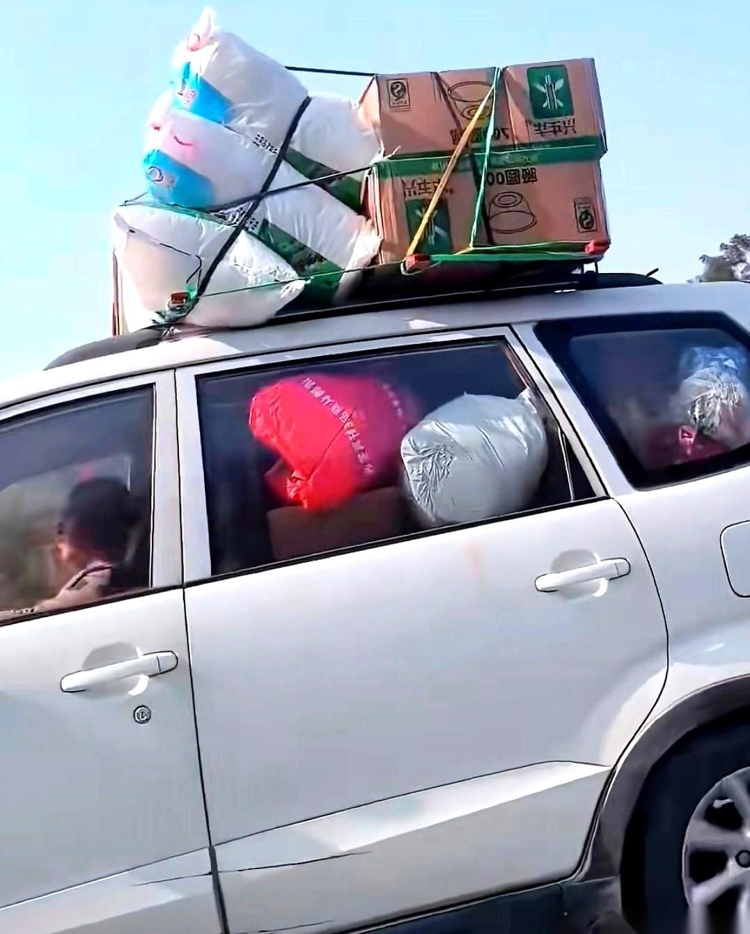 临近过年,高速上总能看到一些让人挪不开眼的车。 一辆小轿车,车顶用绳子横着绑了一大捆甘蔗,宽度早就超了车身,就这么一路呼啸着往前冲。 你以为这就到头了?后面紧跟着一辆,车顶上是张发黄的旧床垫,四个角被尼龙绳勒到快要变形,好像生怕服务区的风大一点,就直接被掀飞了。 更绝的是驮着洗衣机的,连着底座,用被子裹着,在车顶上摇摇晃晃,看得人心都跟着晃。 有人说,那捆甘蔗,是专门从几千里外的南方拉回去的,就为了让家里一年没见的孩子们啃口新鲜的。 而那张床垫、那台洗衣机,就是一种无声的宣告:这是我在外面打拼的家当,哪怕再重再远,一针一线我也要带走,绝不便宜了任何人。 这车顶上驮着的,哪是东西,分明是一整年在外的奔波,和对家最后一点倔强的念想。就是不知道,这算不算违章?