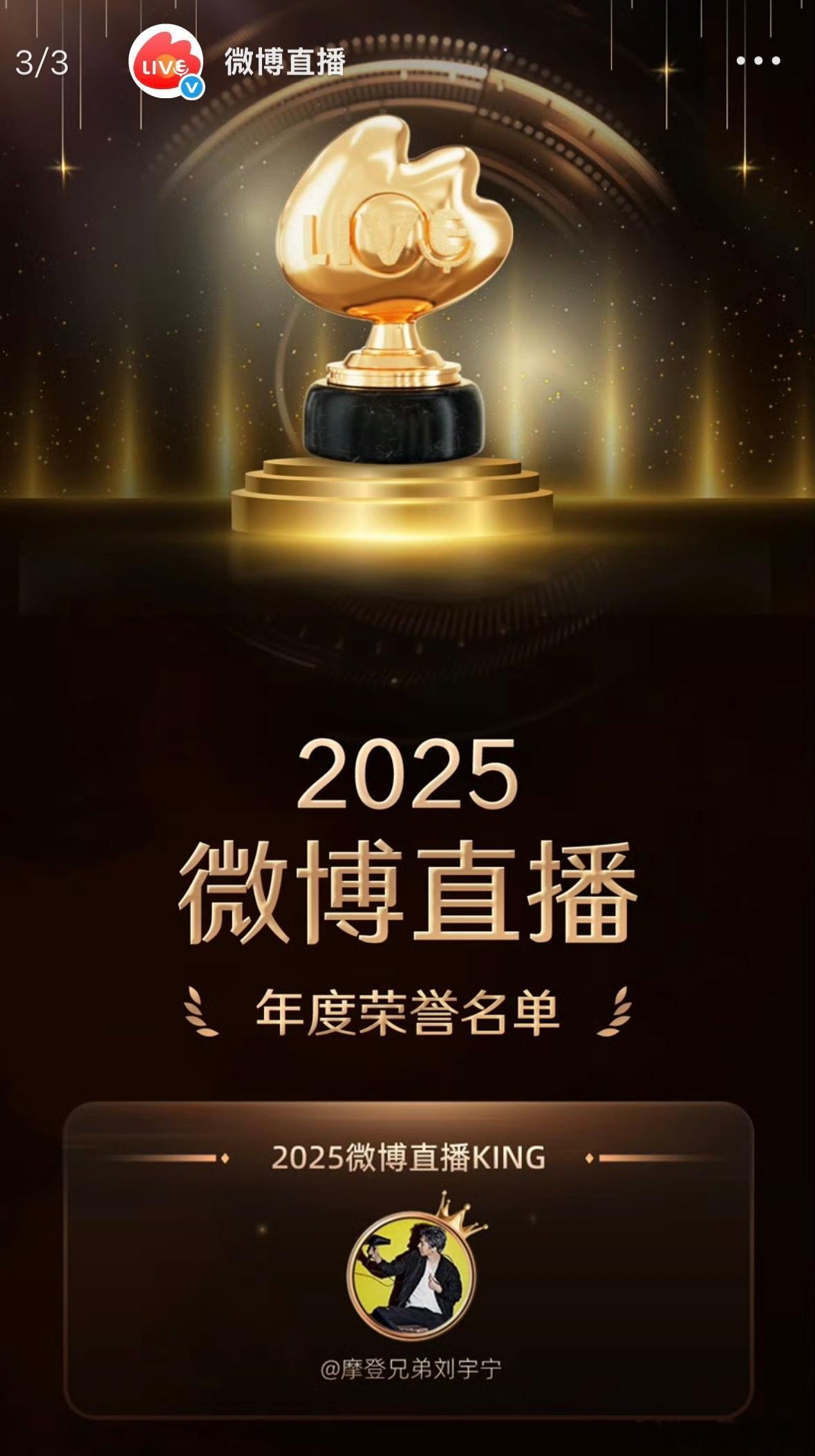 🏆恭喜《折腰》荣获【 2025微博直播最佳电视剧】一折倾心,直播传情。当初借微博直播剧宣,架起了剧集与观众之间双向奔赴的暖心桥梁,从而刷新剧宣直播新形态,11位主演齐聚“直播流水席”,更是成为剧宣的经典名场面🏆恭喜刘宇宁荣获【2025微博直播KING】 「初心赴热爱,赤诚绽锋芒。」真实坦荡,鲜活热忱,刘宇宁直播间,永远主打就是真诚!每每数小时单人脱口秀+演唱会级别的相互陪伴,数千万的观众体量,无人能匹敌!我宁凭实力再度登顶微博直播 KING,当之无愧下一场直播,是不是就能把直播KING奖杯🏆拿给我们炫耀炫耀了,期待ing
