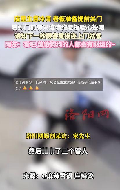 科学也解释不清了!近日陕西西安,一老板看没有生意,就打算提前关门,关门时发现门口有一只一瘸一拐的流浪狗,老板就拿出些食物投喂它,没想到就在投喂的过程中,发现了件意想不到的事情。 现在是2026年1月,回望两个月前的那个西安冬夜,依然能让人在某种商业逻辑的缝隙里,咂摸出一点非理性的余温。 那晚8点,寒风像刀子一样刮过西安的背街小巷。对于麻辣烫店主宋先生来说,这又是一个被数据击垮的夜晚。 店里静得能听见冰箱压缩机的嗡嗡声。全天只接待了两桌客人,营收连平日的三成都不到。在餐饮这行,守店就是守着水电费在烧钱。 这时候的理性决策只有一个:及时止损。宋先生看了看墙上的钟,距离常规打烊还有整整三个小时,但他还是站起身,拍了拍围裙上的面粉,准备去拉那扇沉重的卷帘门。 就在手触碰到门锁的瞬间,角落里的一团灰影让他停下了动作。 那是一只在这个冬天随时可能消失的流浪狗。毛发像板结的旧毡子,浑身因为失温在剧烈颤抖。最刺眼的是那条拖在地上的后腿,每挪动一下,都像是在跟水泥地进行一场惨烈的谈判。 它的腹部深深凹陷,那是长期饥饿凿出的痕迹。 那一刻,宋先生或许在它身上看到了某种镜像——在这个实体经济凛冽的寒冬里,谁又不是在跛着脚、饿着肚子硬扛? 这种无声的共情让他折返后厨。几颗还在滚水里翻腾的牛肉丸,几片厚切的午餐肉,被盛在一次性碗里端了出来。 狗是警惕的,这是流浪生物的生存本能。它退缩,龇牙,直到宋先生蹲下来,像对老街坊那样嘟囔了一句:“吃吧,不抢你的。” 这大约是那天晚上,这家店发生的唯一一笔不计成本、不求回报的“交易”。 如果你相信商业世界只有冷冰冰的算计,接下来的这一幕可能会让你觉得不可思议。 一名路过的年轻女子停下了脚步。她没有看门口张贴的菜单,而是死死盯着那个蹲在地上喂狗的背影。 几秒钟的判断后,她推开了那扇原本打算关闭的玻璃门:“老板,还能做吗?” 这句问话像是一个信号弹。紧接着,刚下班的工装男、路过的中年人,像被某种引力捕获一样接连进店。 原本死寂的后厨瞬间炸开了锅。切菜声、沸水声、点单声交织在一起,把那个寒冷的夜晚硬生生烫热了。 到了晚上10点,这个原本该在一片漆黑中沉睡的小店,竟然座无虚席。备了一下午都没动静的食材,在短短两小时内几乎售罄。 这一晚的临时营业额,冲破了百元大关,甚至超过了前几天的总和。 有人说这是玄学,叫“狗来富”。但在我看来,这是一场极其精密的心理博弈。 在食品安全焦虑无处不在的今天,消费者在面对一家陌生小店时,天然带着巨大的不信任感。 但宋先生喂狗的那个瞬间,无意中签署了一份最有力的“信用契约”。路人的逻辑简单而粗暴:一个连流浪狗都舍不得让它饿着的老板,绝不会在后厨给你用淋巴肉,也不会在地沟油上动心思。 这种信任,是任何团购好评都刷不出来的硬通货。 后来,这只瘸腿的狗成了店里的常客,像尊门神一样守在台阶上。网上的评论区里,人们不再只讨论味道,而是形成了一种奇怪的共识:“对动物有爱心的人,做餐饮卫生也不会差。” 宋先生当初那一念之间的“止损”变成了“投资”,而那个寒夜里的牛肉丸,成了他这辈子投产比最高的广告。 生意场上都在讲流量、讲算法,但有时候,人心才是那个最大的流量池。在这个充满了不确定性的时代,善良,或许是普通人手里最后一张也是最硬的底牌。 信源:洛阳网2025-11-11——《店里生意冷清老板准备提前关门,看到门前有只流浪狗老板暖心投喂,谁知下一秒顾客竟接连上门就餐……》
