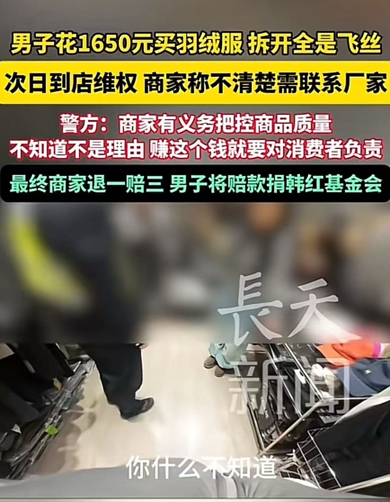 “1650块买件假羽绒服?商家赌的就是你舍不得拆!结果遇到个硬茬。”