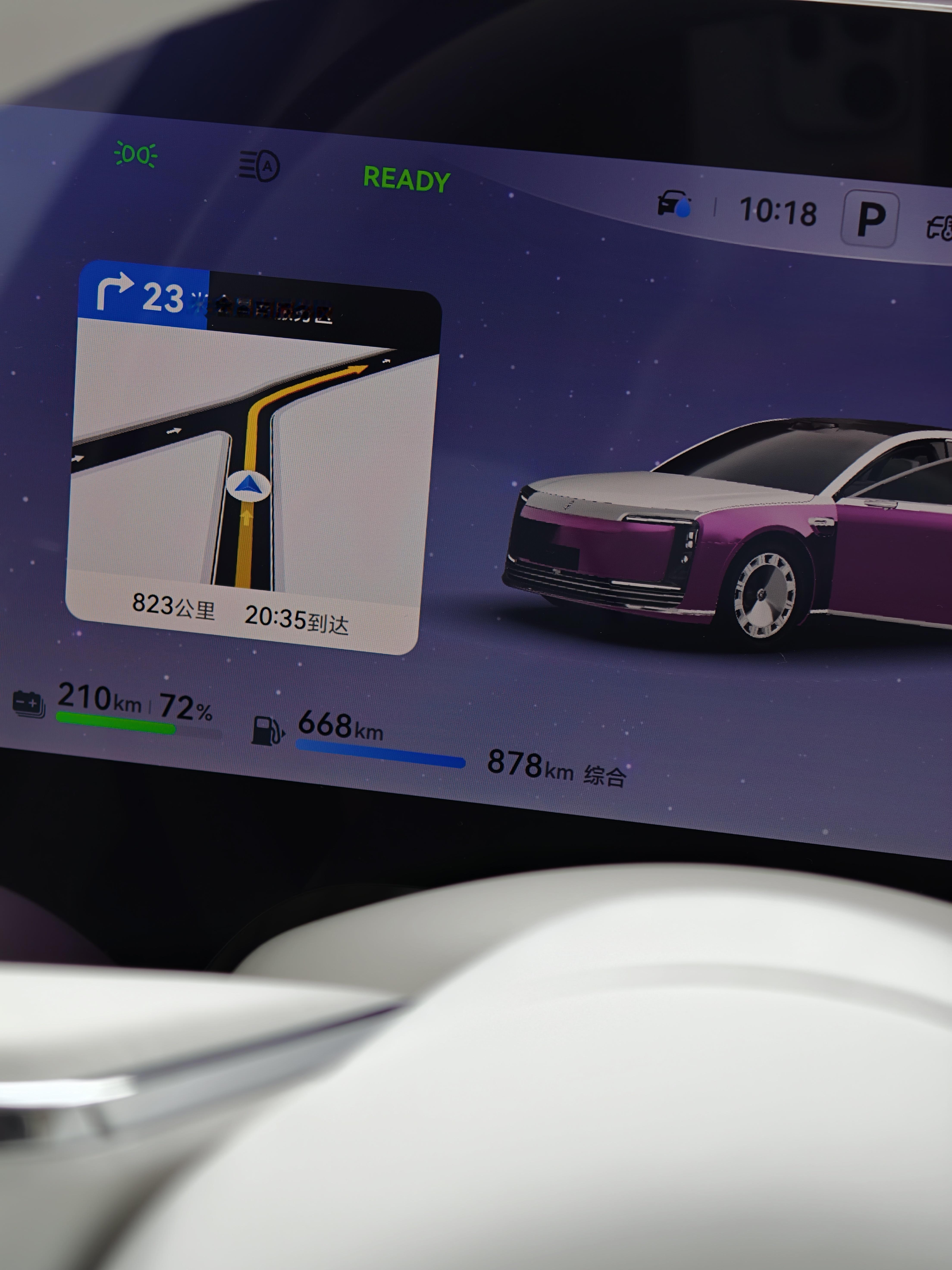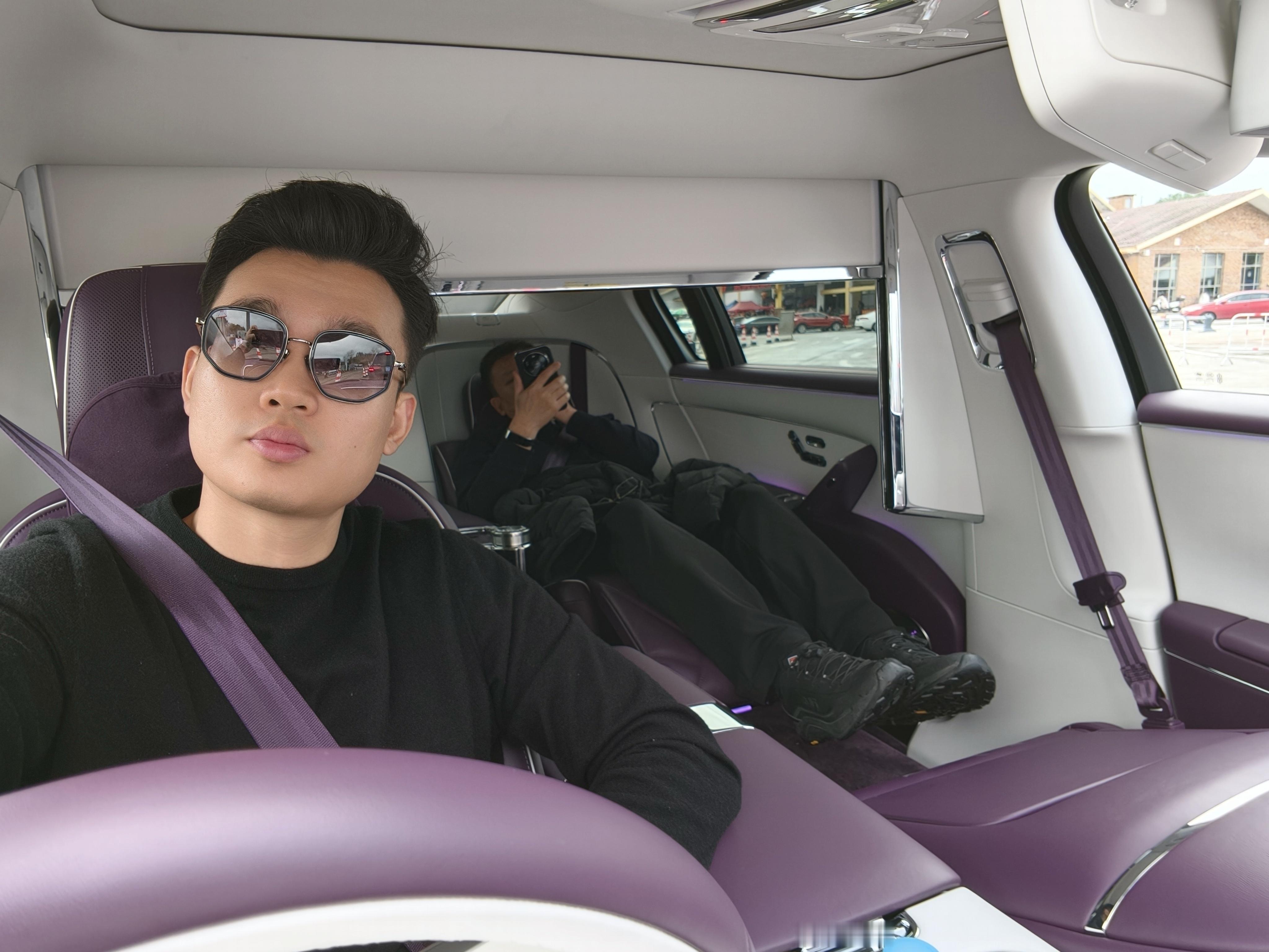 开了四百公里,第一次补能,我爸去后排休息了,继续出发