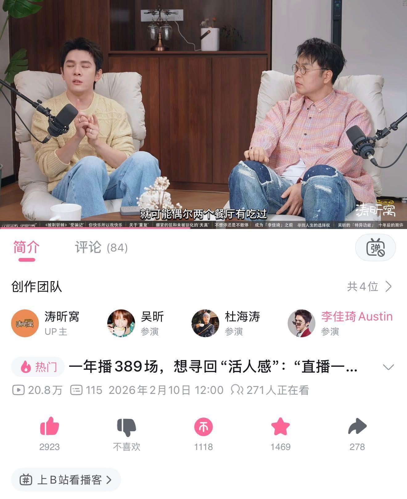 昨天在小破站刷到李佳琦去了吴昕杜海涛的视频播客《涛昕窝》就去看了一下,看完真的觉得,怎么会有人这么有能量啊?完全高精力人,他说他前七年不允许自己休 息,曾经365天直播389场!听到他讲当初录制《披荆斩棘的哥哥》时,白天排练晚上直 播,作为室友的杜海涛也不知道他准 确的行 程,一天只睡几个小时。我都惊了,真给我这个老 鼠 人听得有 点 死 了!李佳琦有这样的精力做什么都会成功的!真的推荐大家去小 破 站看这期视 频 播 客,真 的会更 了 解 李佳琦!