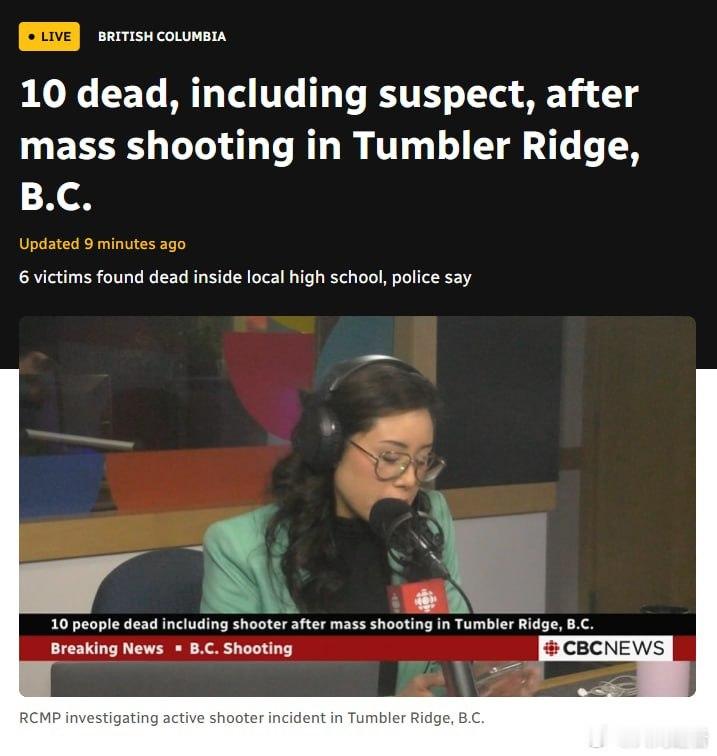 加拿大枪击事件已致10人死亡加拿大不列颠哥伦比亚省图姆布里奇市发生大规模枪击事件,造成9名受害者及一名嫌疑人死亡。