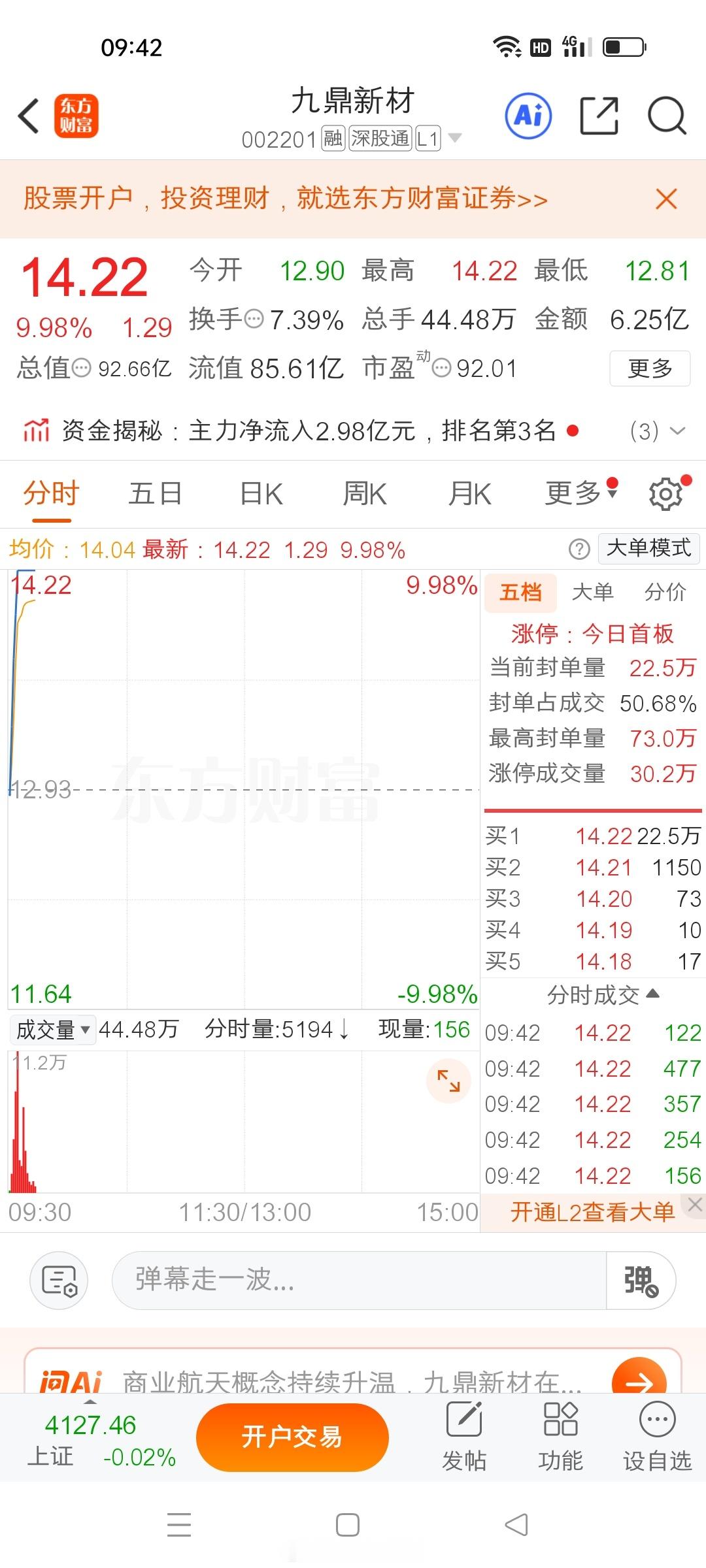 九鼎新材强势封板,节奏拿捏到位,吃肉稳稳的!