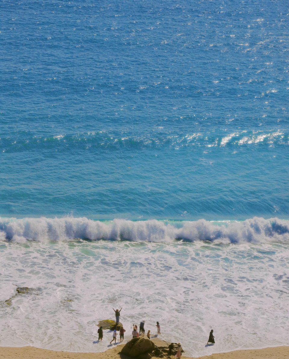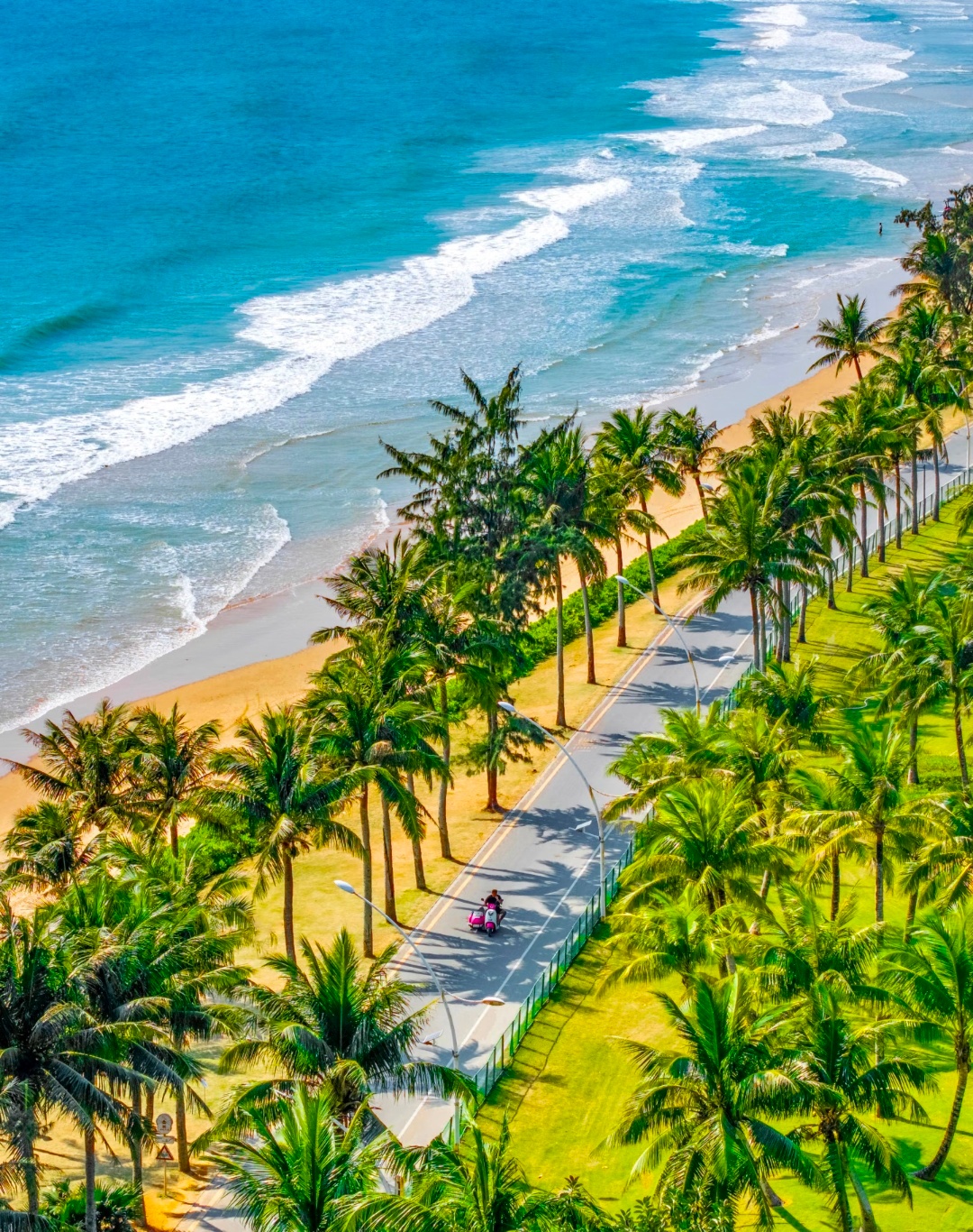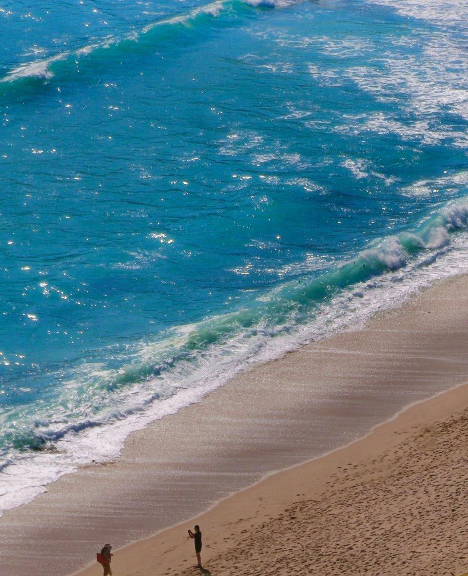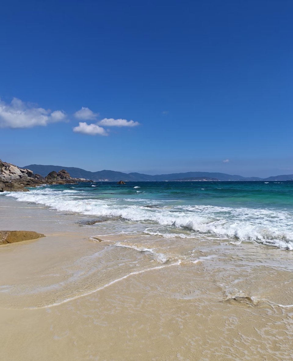 白衫踏浪,晴沙漫步晴日的沙滩漫着暖沙与海盐的气息,蓝海翻着碎银般的浪,远处