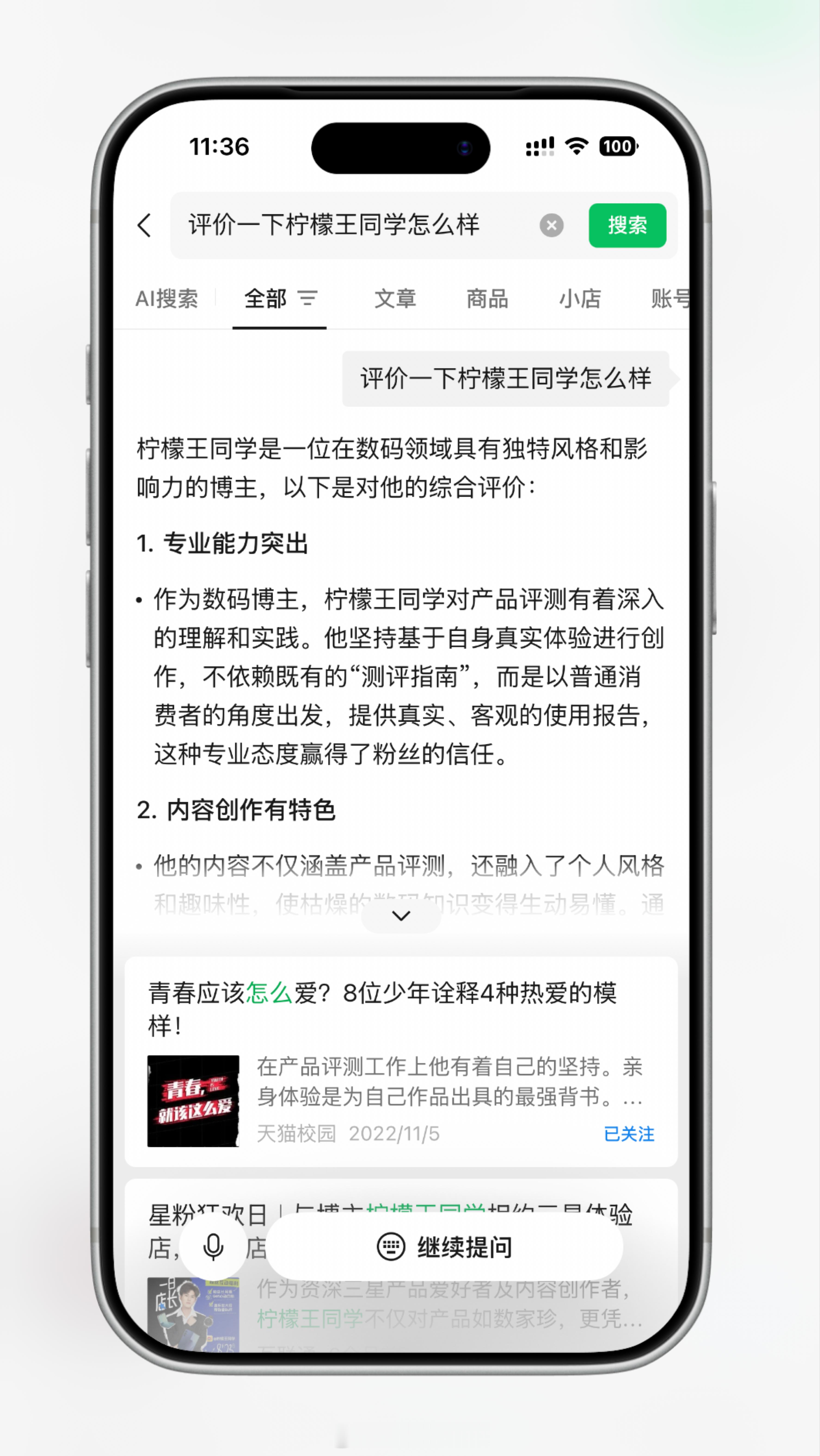 搜索加入了AI功能,可以结合内容给出回答