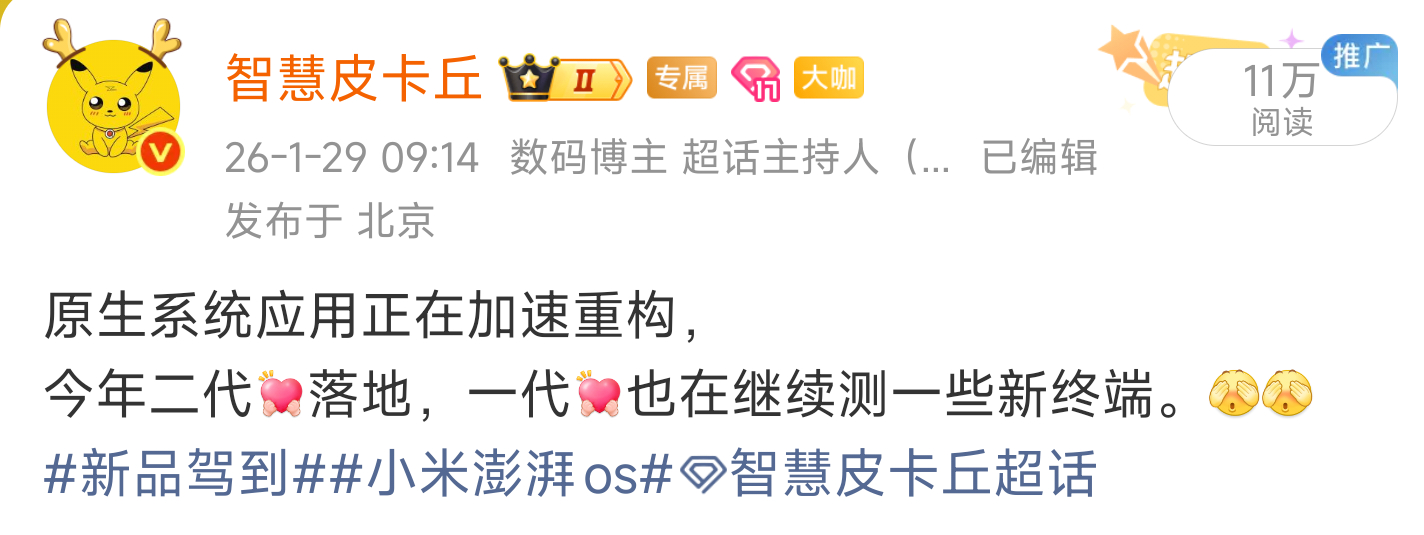 玄戒O1 小米平板7Ultra 完成小米车机系统测试。