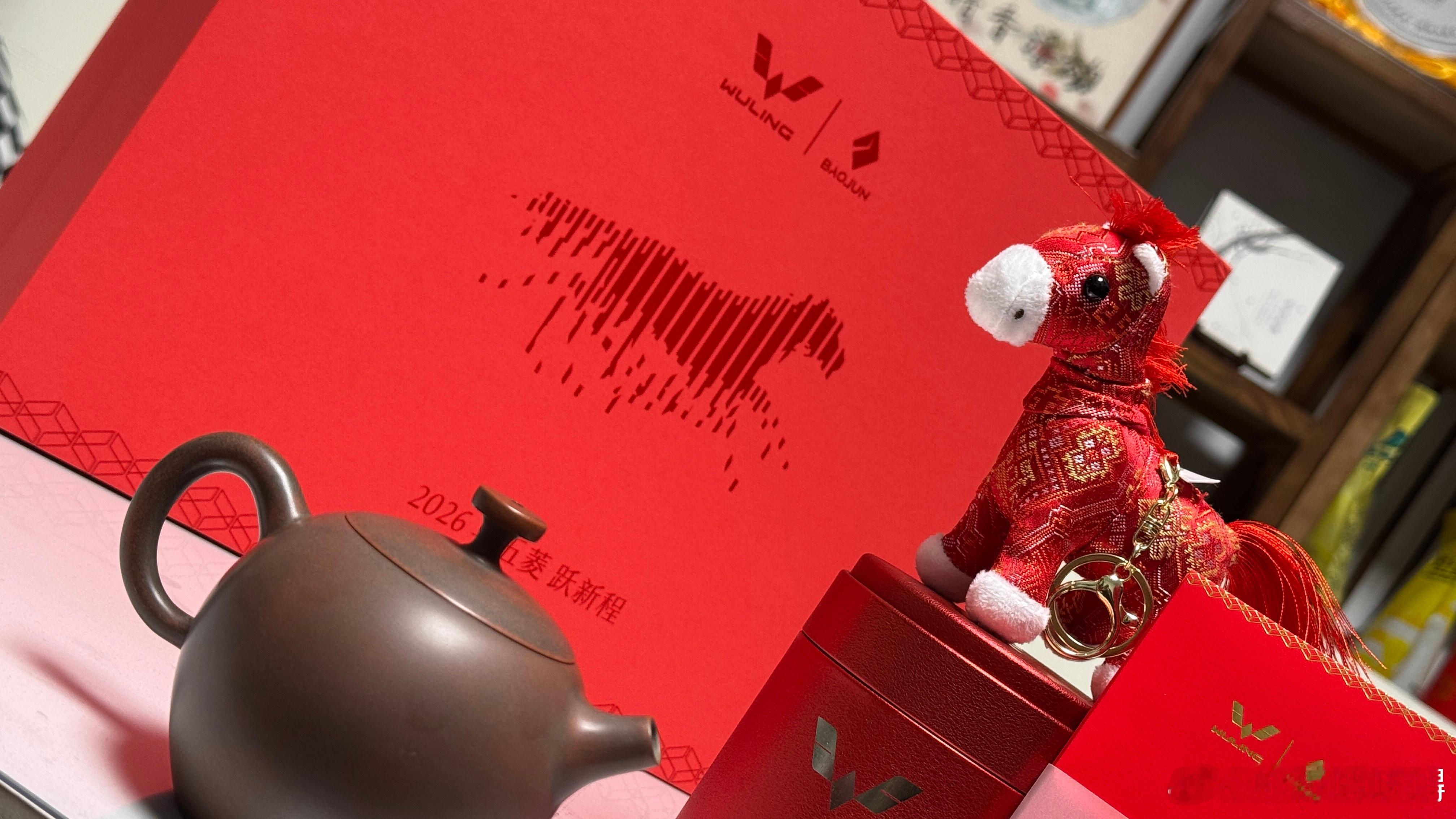 收到了五菱这份匠心独运的新春礼盒,喜悦满怀!壮锦上的瑞马灵动生辉,坭兴陶壶温润承韵,六堡茶香醇厚萦绕,非遗之美与人间烟火温暖相融。新的一年,愿与五菱共跃新程,一路向前,万事顺意,马到功成!与五菱跃新程