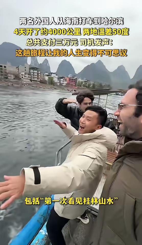 这就是有钱任性!海南两位外国友人打车去哈尔滨,4000公里跨越大半个中国,普通司机接下这趟奇遇人生! 很多人觉得这只是土豪的任性玩法,可我看完满是感动。这不是简单的花钱赶路,而是两个热爱中国的外国人,用最接地气的方式感受山河。罗师傅一辈子没离开过海南,敢接这单,是勇气也是对生活的期待。一路故障、换车、边开边玩,他第一次见雪山、逛北方,全程被尊重、被照顾。 钱能买到行程,买不到真诚与温暖。这趟旅途,外国人看到最真实的中国,普通人圆了半生的梦。最好的旅行,从来不是终点,而是路上遇见的人。 这样的奇妙缘分,你敢接这样的订单吗?