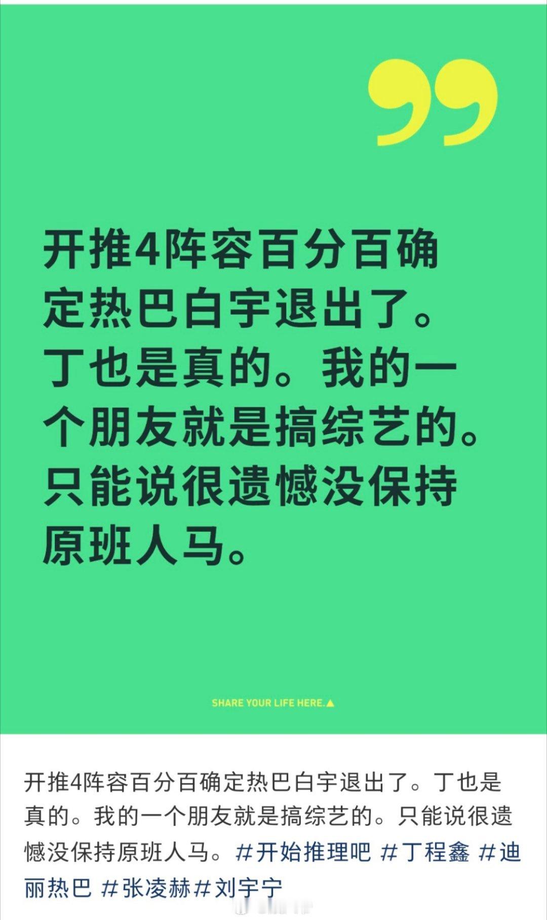 开始推理吧4,迪丽热巴退出,白宇飞行,丁程鑫确定,阵容大改变