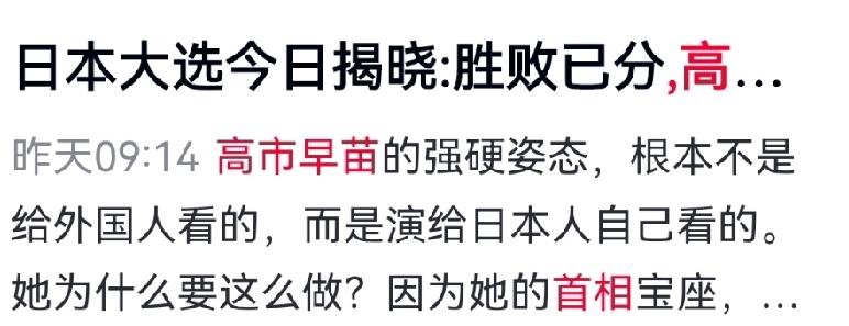 首位女首相高市早苗,本就是个“异类”。无强硬派系支撑,执政履历也不亮眼,靠抱安倍大腿、煽动右翼情绪上位。上台后不思改善经济、解决民生,反倒一门心思搞事情,修宪扩军、讨好美国、挑衅中国。 她炒作台湾问题,宣称可能军事介入,实则有三步算盘:对内转移矛盾,对外抱美国大腿,掩盖自身无能。可她没想到,中国反击直击要害。中方连发四问,戳中日本痛处,彰显捍卫国家利益的坚定决心。 中方行动更是实打实,收紧稀土出口管制,日本军工、电子企业停工减产;暂停中日航线,重创日本旅游业。日本民众苦不堪言,终于看清高市早苗的“强硬路线”只为私利。如今,她卸下伪装,眼含热泪求饶,可一切太晚。若日本真想发展,高市早苗真想保住首相之位,就别再玩火,否则求饶也没用。 对此你怎么看?