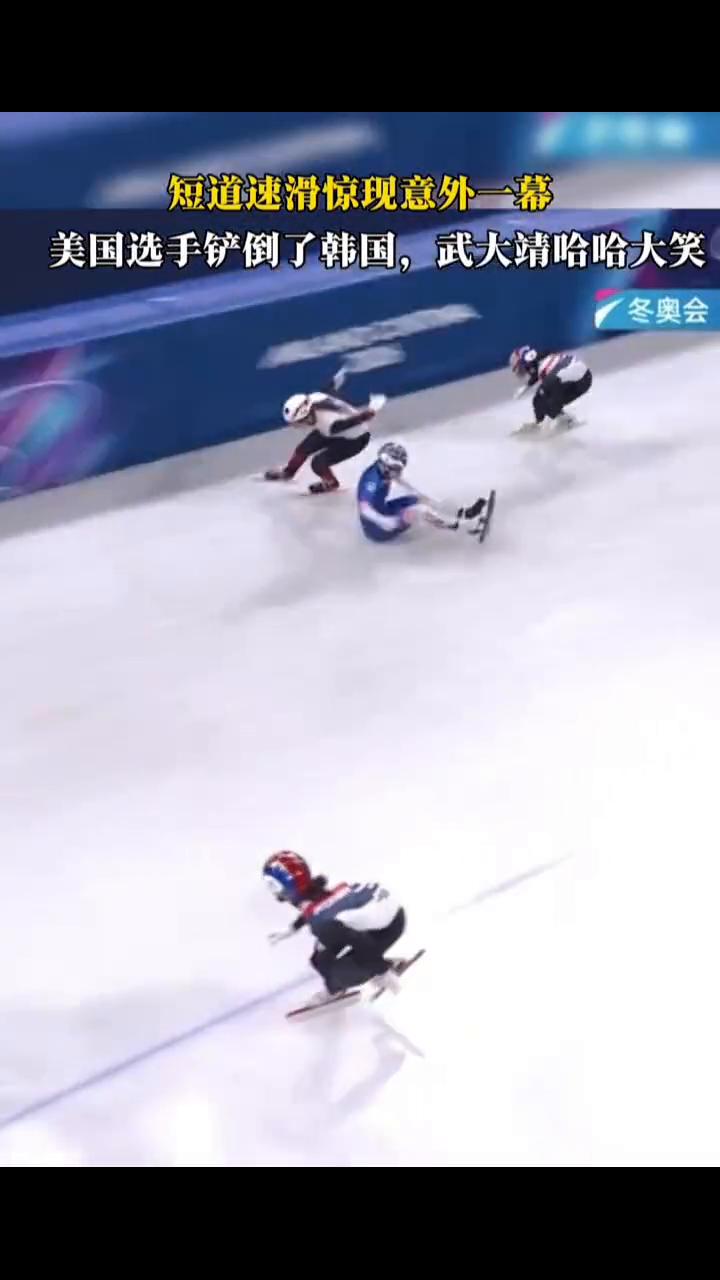 短道速滑惊现意外一幕,美国选手铲倒了韩国,武大靖哈哈大笑。 美国队摔倒了,把韩国队带出去了。这个真是把韩国队带出去了,瞬间风云变幻。美国队自己滑拧了,然后差一点。