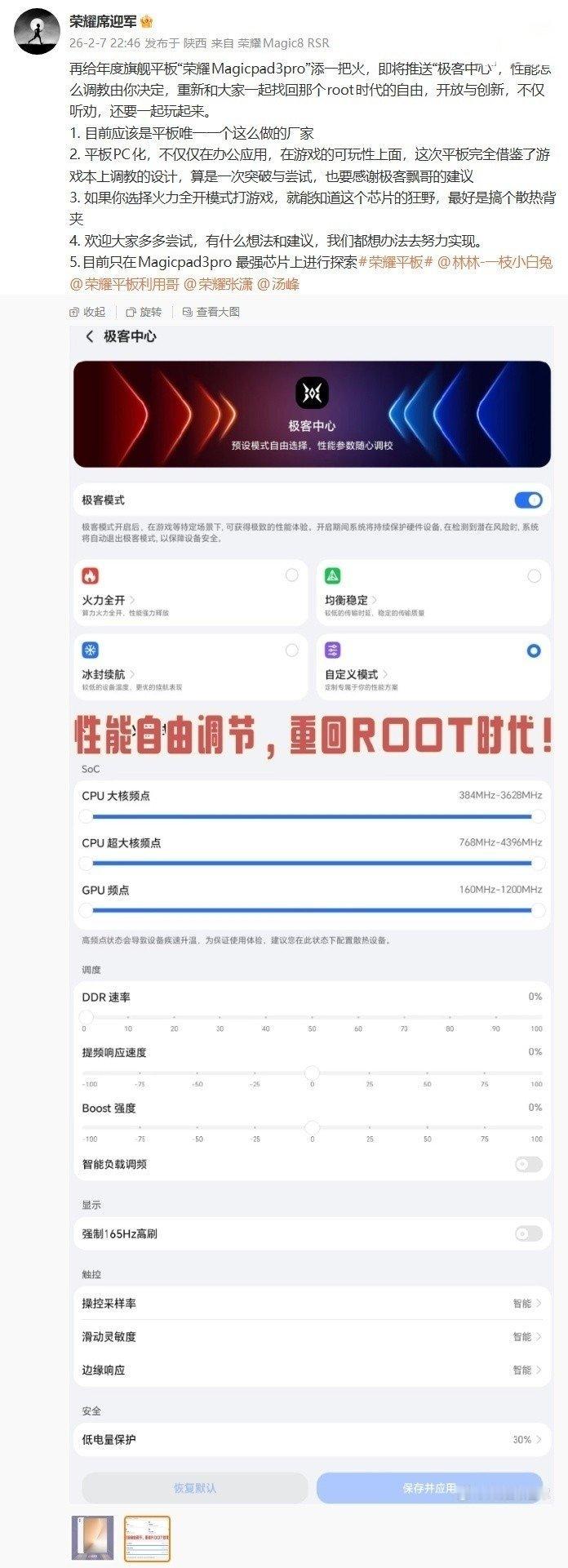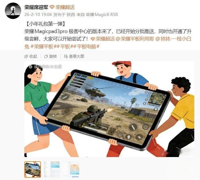 【荣耀平板「小年礼包第一弹」:MagicPad 3 Pro 极客中心版本启动分批推送,自定义温控曝已在路上】