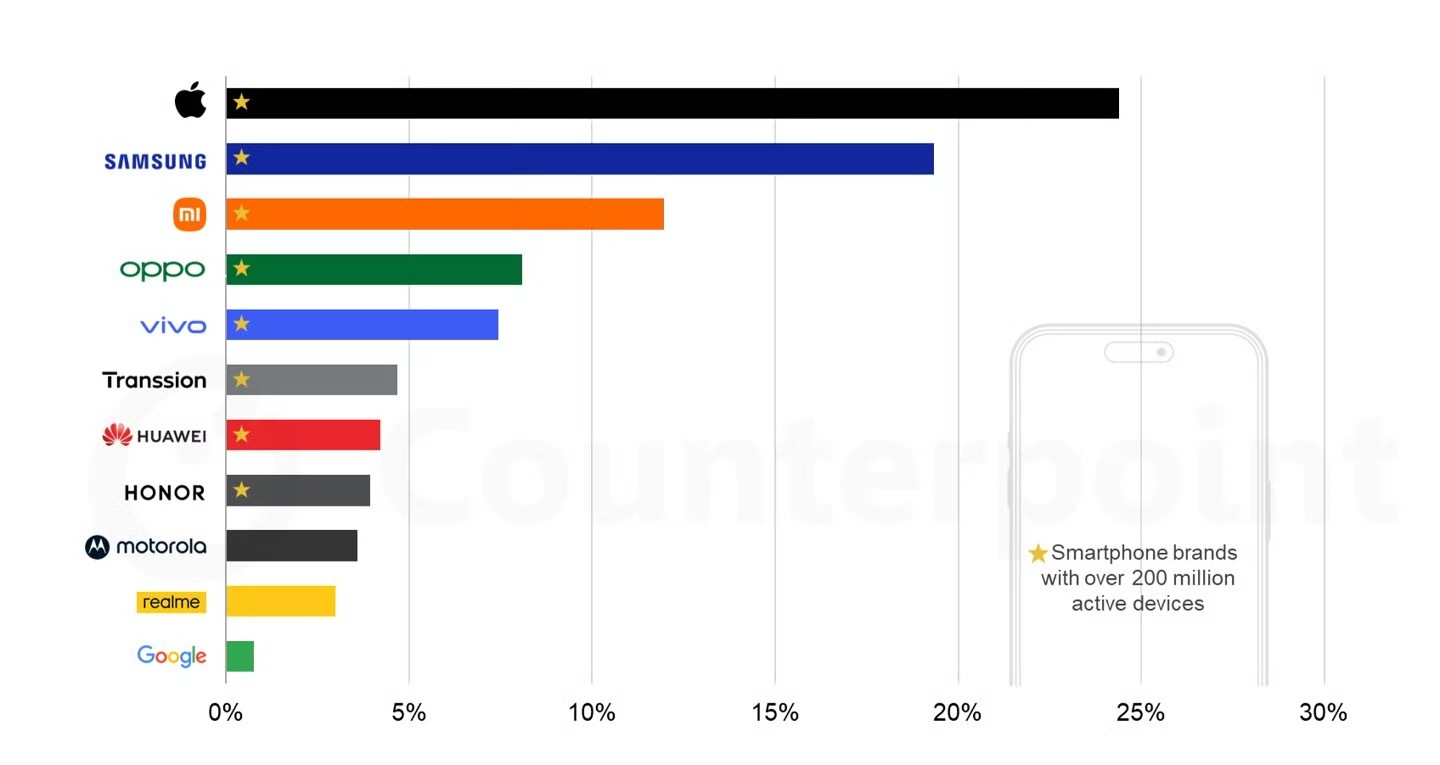 全球每4部手机就有1部iPhone真没想到,数据这么夸张——全球每4台在用手机里,就有1台是iPhone,苹果去年新增的活跃设备量,比后面七大安卓厂商加起来还多。不得不说,很多人一用就很多年不换。我还是觉得,安卓更好用。充电速度、通话录音、长截屏……这些日常高频刚需,安卓用着更顺手、省心一点。