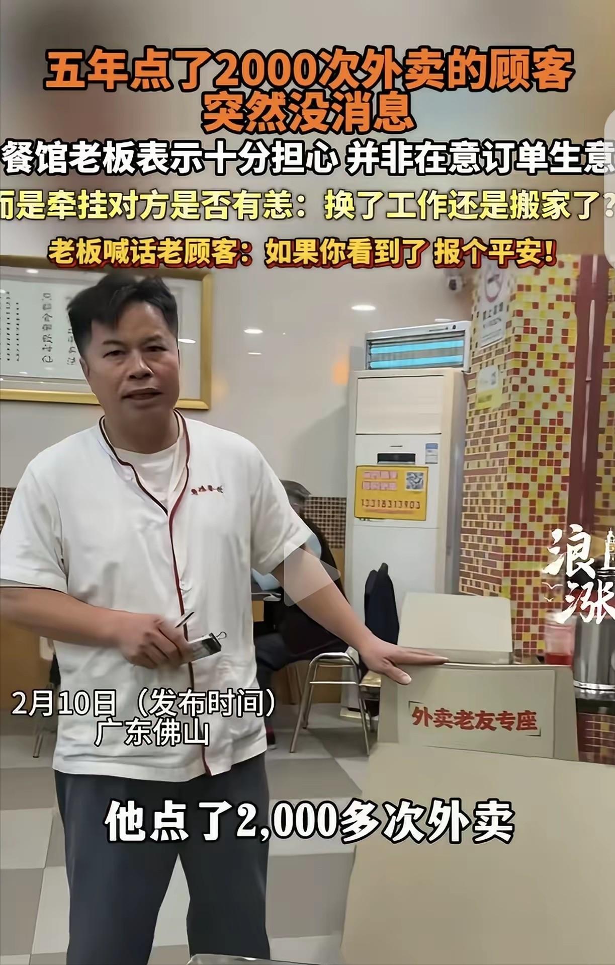 广东佛山,一男子开了家粤菜馆,有个顾客5年点了2000次外卖,突然1年多都没下单,男子很是牵肠挂肚,他不是想挣这个顾客的钱,而是担心对方的安危,不知道是换工作了还是搬家了,男子喊话:如果你看到了,报个平安! 在广东佛山的一家粤菜馆后厨,油烟机轰鸣声的缝隙里,藏着一个令人窒息的数据断层。 店里的外卖接单系统像往常一样滚动,但对于老板来说,屏幕上始终悬着一行看不见的“第2001单”。 那是后台数据流里一个极度突兀的刹车印:一个连续滚动了5年的ID,在累积了2000次下单记录后,突然在一年多前陷入了死寂。 这不是一次普通的客户流失。试想一下,五年时间,2000次交易,折算下来几乎是每天一到两顿饭的高频覆盖。 这意味着,这家店的厨房实质上充当了对方五年的“编外食堂”。然而,这条原本坚韧的数字化脐带,在2024年的某个节点被生生剪断,随后是整整一年的空白。 对于店主而言,他面对的不是营业额的亏损,而是一种名为“生活习惯消失”的巨大空虚。他甚至不需要看屏幕,身体已经形成了某种条件反射般的肌肉记忆。 只要那个熟悉的ID一闪烁,他就要下意识地挑最嫩的白切鸡,少放盐,多加一份豉汁排骨或虾饺。 这种默契不需要备注栏里的文字提醒,它是2000次味蕾博弈后建立的单向透明契约。老板从未见过对方的脸,物理上他们是陌生人,但在生理层面,他比对方的家人更了解这个人的胃。 这种关系很微妙,你可以称之为“云端搭伙”。在原子化的城市森林里,外卖员的电动车轮是连接这两个孤岛的唯一摆渡船。 当摆渡船停摆超过365天,焦虑就开始像苔藓一样在老板心里疯长。起初是推测对方出差、旅游,后来变成了对生存状态的根本性怀疑。 终于,这种憋了一年多的担忧冲破了心理防线。店主选择了最原始也是最现代的方式——全网喊话。他不在乎那几十块钱的营收,甚至承诺只要对方现身,终身免单。 这一嗓子喊出去,把网络舆论场撕开了一个关于人性的切面。 评论区里,善意与恶意并排坐着。一部分网友构建了最理想的乌托邦:他一定是因为结婚了,有人给他煲汤做饭,不再需要冰冷的外卖盒。又或者日子变好了,换了口味去吃山珍海味。 但现实主义的冷箭也嗖嗖地飞。有人半开玩笑半认真地敲出“噶了”两个字,刺眼得让人心惊。还有人搬出了阴谋论,质疑老板“隔了一年才找”是鳄鱼的眼泪,是为了炒作店铺流量。 这种质疑其实很无力。真正的关心往往具有滞后性,只有当“暂停”变成了“永久停止”,当等待变成了绝望,寻人的冲动才会压倒不打扰的礼貌。 有人搬出了《民法典》第八条关于“公序良俗”的条款来审视这件事。其实大可不必上纲上线,老板的行为在法律边界内拿捏得极有分寸,没有曝光隐私,只有模糊的呼唤。 这恰恰触及了商业社会最稀缺的“厚度”。在算法不仅计算送达时间,也计算人情冷暖的今天,这2000个订单的价值,早已超越了财报上的数字。 老板想要的,不过是一个薛定谔的答案落地。 他不图那个ID再次下单,也不图对方感激涕零。他只是想在庞大的、冷漠的数字化洪流中,确认那个曾经把胃托付给自己五年的生命,依然鲜活地存在于这个世界上的某个角落。 哪怕只是回一句“我吃腻了”,对他来说,也是最好的报平安。 信息来源:中华网2026-02-1107:38—老板喊话点2000次外卖顾客报平安五年老顾客突然失联