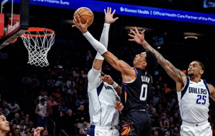 2月11日,NBA常规赛继续开打,独行侠做客挑战太阳,本场比赛莱夫利、克莱和阿伦等人缺战。最终经过四节较量,太阳120-111力克独行侠,狄龙23分,布克19分6助,马绍尔31分,弗拉格27分5板。 全场比分(太阳在后):16-36,32-29,27-31,36-24。 上半场,太阳开局就打出11-1掌握主动,反观独行侠进攻糟糕。首节结束时,太阳领先已达到20分。次节太阳继续猛攻,科菲命中追身三分,分差来到30分,独行侠此后有所调整终于止血。半场结束时,太阳65-48仍领先17分。 下半场,围绕20分左右的分差,两队继续展开拉锯。三节结束,太阳96-75领先21分。末节马丁崴脚,独行侠发起凶猛反扑,一度将分差迫近至6分,但终究未能实现逆转。最终太阳120-111力克独行侠,送给对手八连败。 双方数据 太阳(32胜22负):狄龙23分3板1助、布克19分4板6助2断、威廉姆斯13分8板1助、奥尼尔12分4板2助2断、邓恩12分4板2助、格林12分1板4助、伊戈达罗10分10板4助2帽、古德温8分3板3助2断、科菲6分2板1助、吉莱斯皮5分9板8助 独行侠(19胜34负):马绍尔31分4板2助、弗拉格27分5板2助、米德尔顿13分5板2助、华盛顿13分5板1助、巴格利9分8板2助、克里斯蒂5分6板3助2帽、威廉姆斯5分2板2助、加福德4分4板3帽、琼斯2分2板3助、马丁2分1板、鲍威尔1助