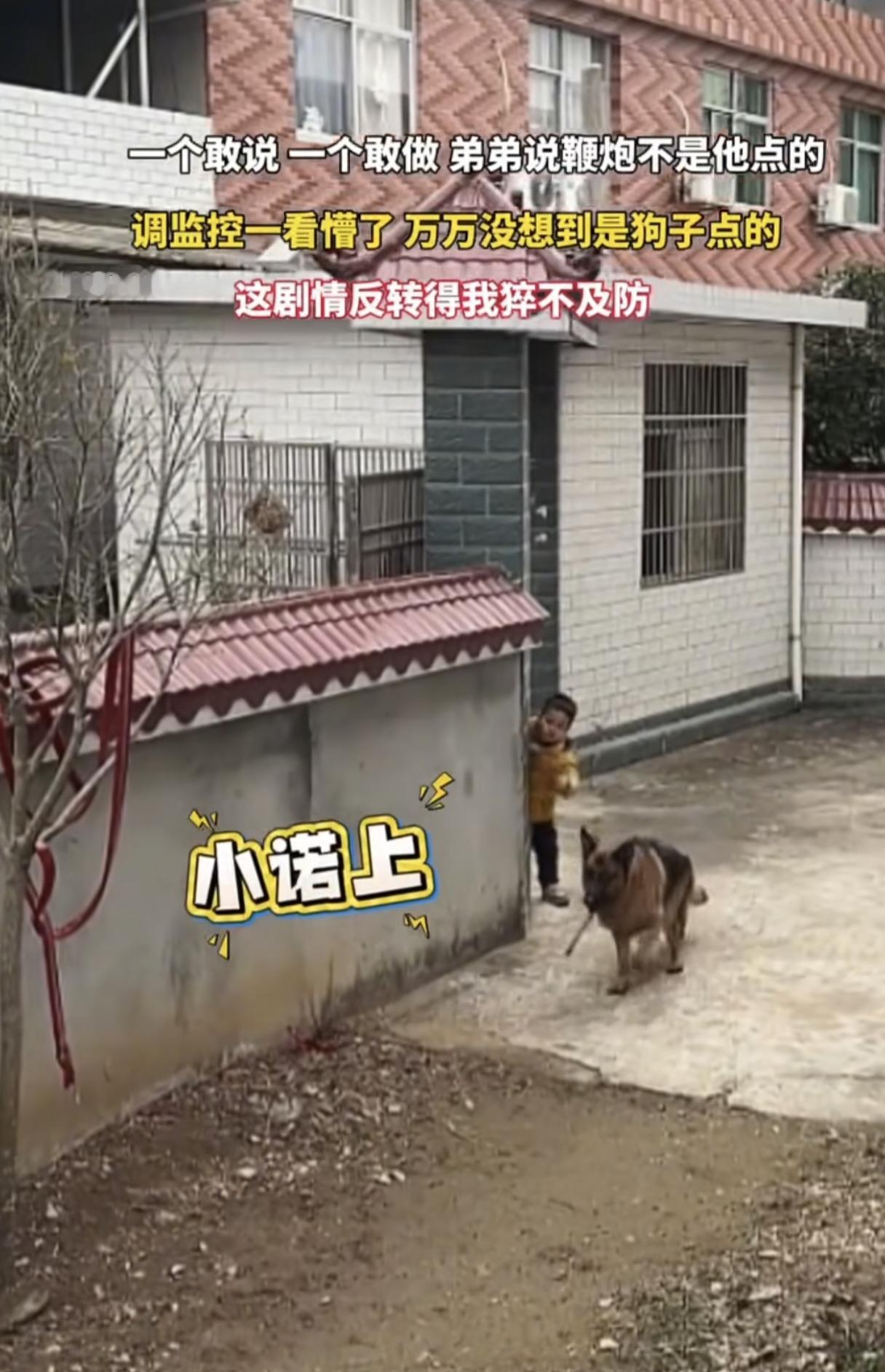 这狗竟然能听懂人话!男孩妈妈觉得放鞭炮危险,叮嘱儿子不许碰,谁知男孩灵机一动,喊来狗狗,将带有火星的木棍让狗狗含在嘴里,经过一番交流,狗狗真的走上前去对准鞭炮,成功点着了! 妈妈本想记录一下爸爸回家过年的情景,顺便准备好了鞭炮,可准备点燃的时候,妈妈还是觉得有点危险,便作罢,并叮嘱儿子不许碰。 妈妈跟爸爸一起进了院子,却突然听到了鞭炮的声响,吓得妈妈一激灵,赶紧跑出来查看。 男孩面对妈妈的责怪,一口咬定不是自己放的,妈妈查看监控才发现,真的不是男孩放的鞭炮。 监控显示,男孩把带有火星的木棍让狗狗含在嘴里,然后自己跑到鞭炮跟前,对着狗狗一顿“汪汪、汪汪……(这样,那样,上!)”的交流起来。 一开始狗狗还迟疑,后来没想到真含着木棍走上前去了,并且精准的对准了鞭炮,超级稳当的把鞭炮给点燃了! 点燃后的狗狗撒腿就怕,男孩也贴心的帮它耳朵捂起来。 这狗狗简直是太聪明了,竟然能听懂男孩的交流,能明白主人的意思。 而且它的胆子也超级大,很多狗狗都是很怕鞭炮声的,但是它却可以克服恐惧,勇敢的把鞭炮点燃,真是让人佩服! 能养一只这样的狗狗,生活里一定处处充满惊喜,这一家人也是超级幸运了!