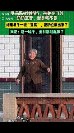 “笑不活了!”近日,黑龙江一个小伙开车回老家看奶奶,结果回来早了门没开,于是扯着嗓子就喊:“奶!奶啊!”没动静,不料,小伙喊了一声:“豆腐!”奶奶立刻从屋里走了出来!网友:“耳朵背不背,关键你喊啥!” 黑龙江一位年轻男子趁着空闲时间驱车返回农村老家,想要给家中的奶奶一个惊喜。 因为出发时间比较早,等他赶到奶奶家的时候,院子的大门还紧紧关着,老人并不知道孙子已经到家。 东北农村的院子空间较大,加上奶奶年纪大了听力有所下降,男子站在门外连着喊了好几声奶奶,屋内都没有传来任何回应。 他以为奶奶还在休息,或者是距离太远根本听不到声音,反复尝试了几次之后,依旧没有任何效果。 在无计可施的时候,男子突然想起奶奶平日里的生活习惯,心里立刻有了一个可行的办法。 他清了清嗓子,朝着院子的方向大声喊了两句“豆腐——”。 让人意想不到的是,这两句豆腐刚喊完,没过几秒钟,奶奶就从屋子里快步走了出来,还朝着门外的方向张望,以为是村口卖豆腐的商贩来了。 老人出门的时候脸上带着笑意,完全没有想到站在门外的会是自己的孙子。 直到看清门外的人是许久未见的孙子,奶奶才明白过来,刚才那两声豆腐,是孙子用来喊自己开门的办法。 这段只有十几秒的视频被男子记录下来发到网上之后,很快就吸引了大量网友的关注,大家在觉得好笑的同时,也看出了这件事背后藏着的真实情况。 很多网友都调侃说,这一声豆腐喊出去,说不定全村的老人都会拿着盆子出来买豆腐。 还有网友表示,奶奶不是耳朵不好使,只是对不同的声音有着不一样的反应。 从实际情况来看,奶奶并不是完全听不见声音,也不是故意不回应奶奶这个称呼。 老人常年生活在农村,听力随着年纪增长逐渐下降,对不常听到的声音反应会慢很多。 男子平时在外工作,回家看望奶奶的次数并不多,老人对他的声音已经没有那么熟悉,所以连续喊奶奶都没能引起注意。 而豆腐这个词,是老人几十年生活里最熟悉的字眼之一。 在老一辈人的生活里,没有便捷的外卖和送货上门服务,村口商贩喊一声卖豆腐,就是家里能添一道菜的信号。 久而久之,听到豆腐就出门看看,已经成了刻在老人骨子里的习惯。 这种本能的反应,和听力好坏没有太大关系,只是长久生活留下的自然举动。 奶奶每天操心的都是柴米油盐这类小事,惦记着家里的三餐饮食,对这些生活相关的信号自然格外敏感。 对于常年在外的晚辈来说,回家是偶尔的惊喜,可对于留守在家的老人来说,平淡的日常才是生活的全部。 她们不会时刻期盼着家人突然出现,所以对代表亲人的称呼反应平淡,却会对融入每一天的生活信号立刻做出回应。 没有华丽的语言,没有刻意的修饰,这件小事就这样真实地展现在大家面前。 它只是无数农村老人生活里的一个缩影,藏着最接地气的人间烟火,也藏着最朴实的亲情模样。