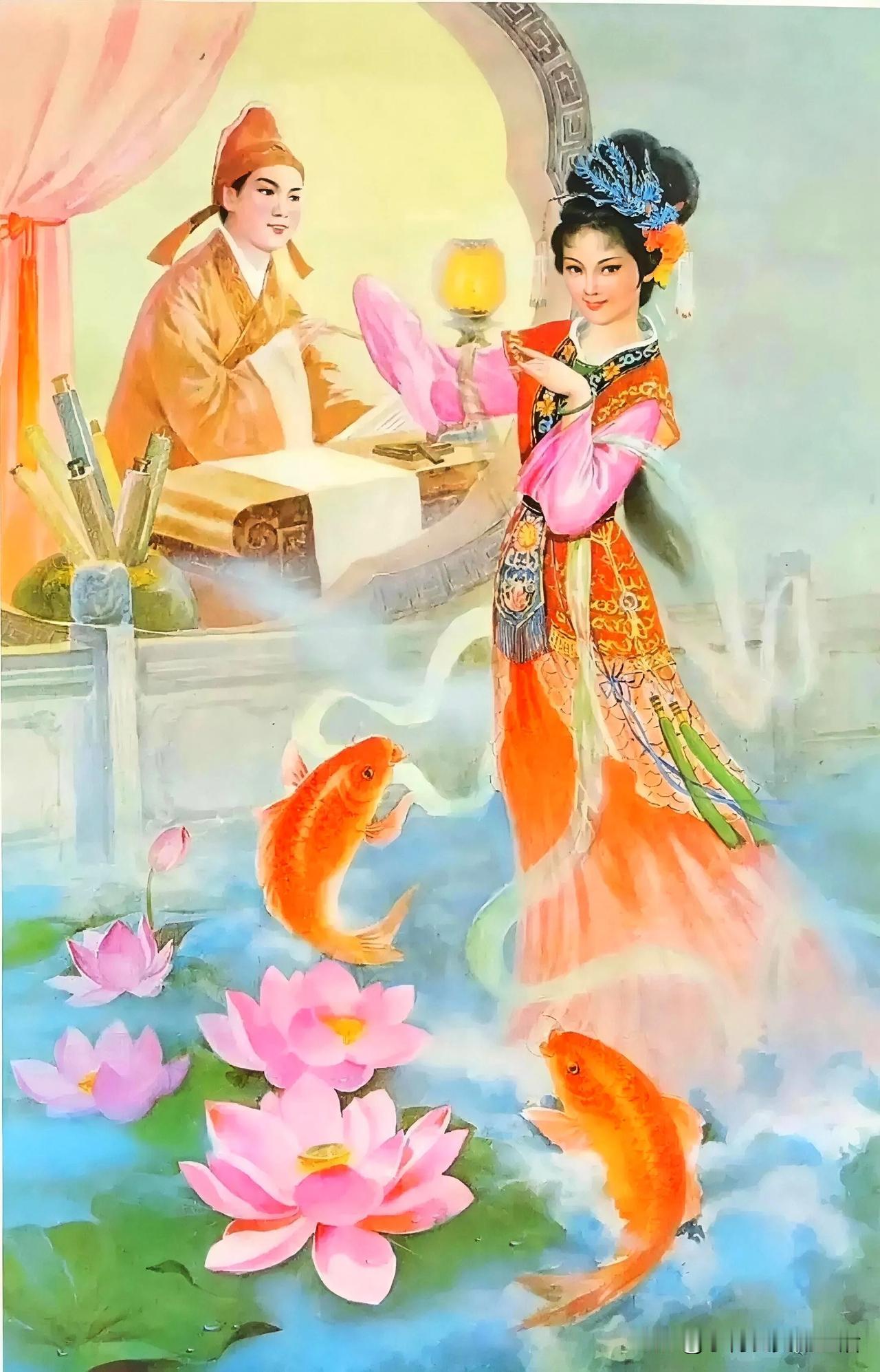 红袖添香夜,轻抚古琴弦。