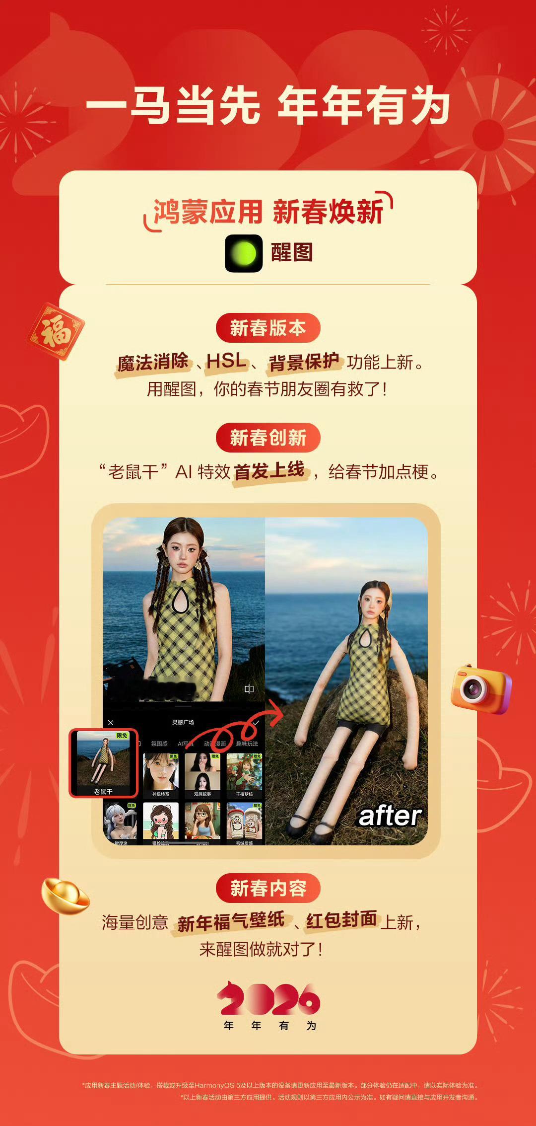 真快啊!前几年还是“清水房”,今年鸿蒙应用真的集体升级“豪华装修”了。趁着马年春节,发现常用App全都在整活儿,不仅有微信红包新表情、抖音“碰一碰”传视频这种社交神器,连高德实况窗和12306负一屏卡片也精准拿捏了返乡和出游的焦虑。 说实话,这种从“能用”到“好用”的丝滑感,真的让过年更有“年味”和科技范儿。不管你是要拍3D全家福,还是组队掼蛋,鸿蒙生态这次真的“一马当先”了。 鸿运马上来