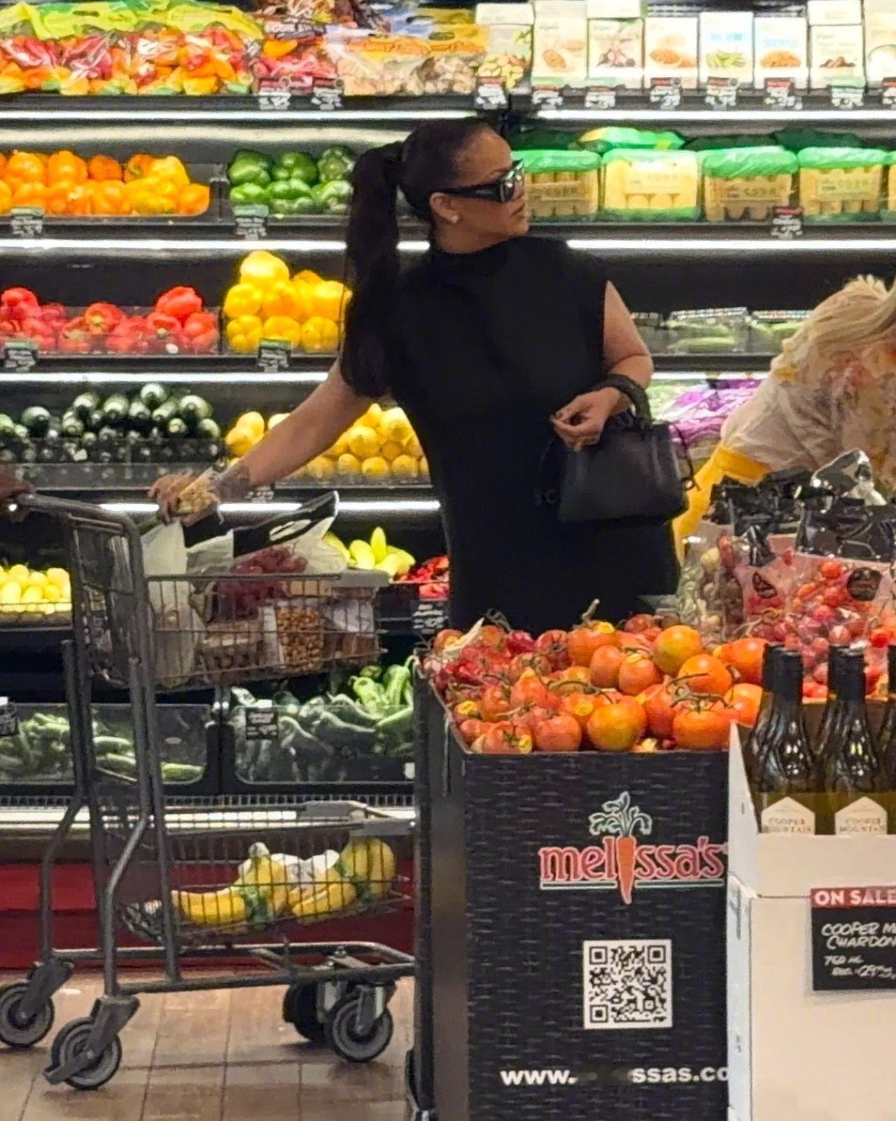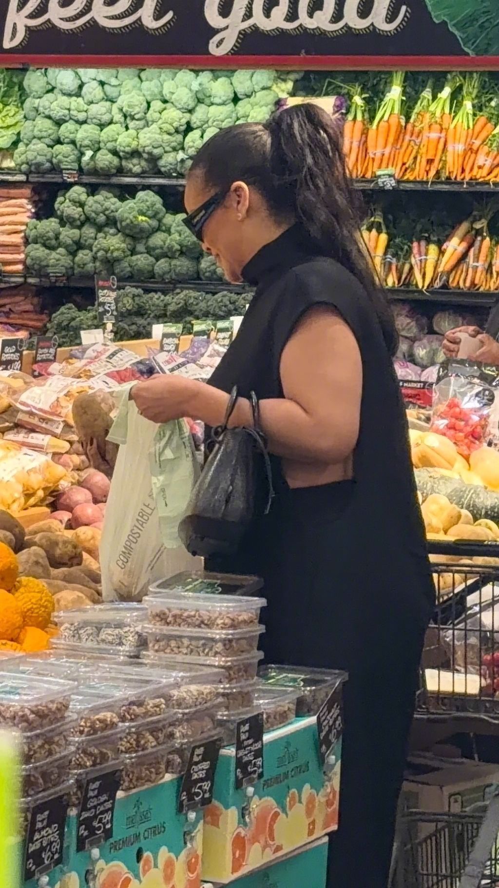 过年了,山东天后蕾哈娜现身超市买大葱,顺便还买了盆兰花。