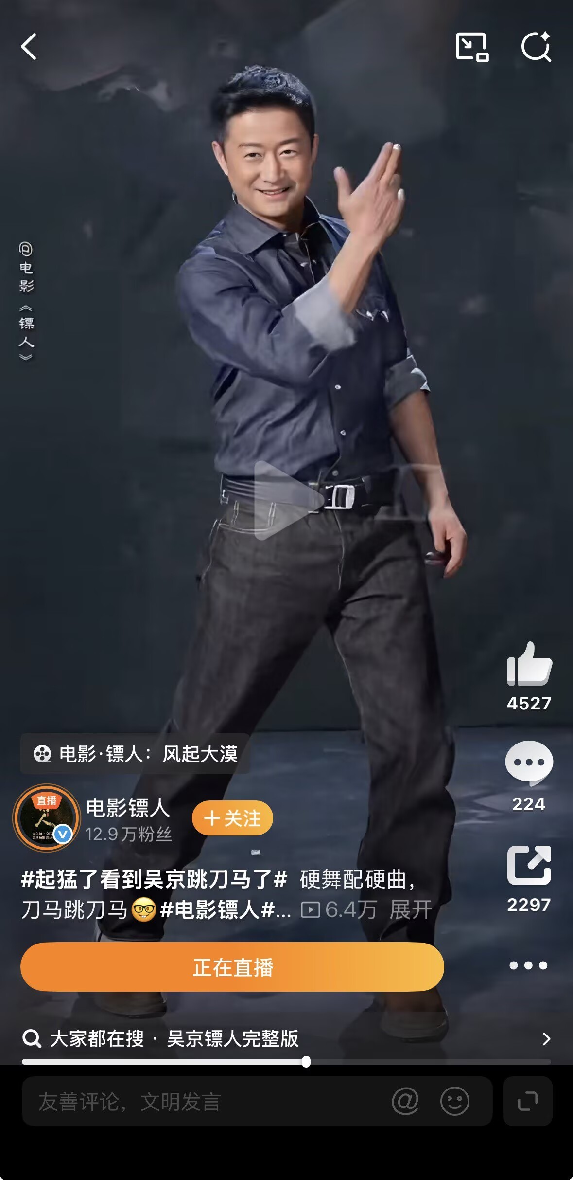 吴京这年纪还跳刀马,妥妥老实人豁出去了的感觉京心里想“小样,被我迷住了吧”吴京跳刀马刀马