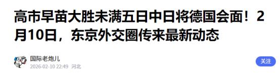 高市大胜不到5天,中日双方将在德国会面?   2月8日,日本众议院选举结果出炉,