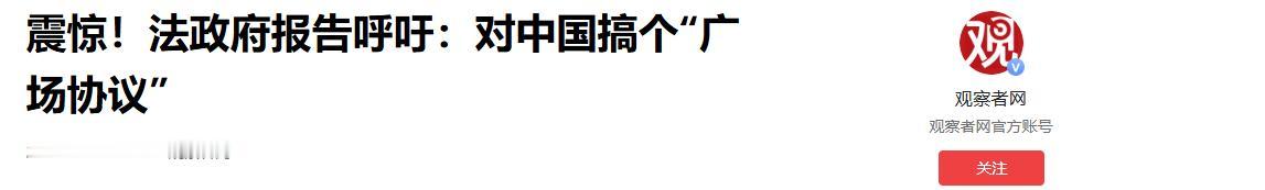 欧美冲突一触即发,马克龙却调转枪口,想逼中国签“广场协议”? 马克龙彻底坐不住了,预感到欧美即将翻脸,却突然调转枪口,想逼中国签下“城下之盟”。这注定是一场惨败的豪赌。 法国总统马克龙最近的日子不好过,他对跨大西洋关系的悲观情绪已经掩饰不住。在他看来,欧美之间短暂的缓和只是暴风雨前的宁静,深层次的利益冲突早已是一触即发。 马克龙特意提到了格陵兰岛问题,这可不是随口一说。这背后暗示的是美国对欧洲战略生存空间的持续挤压。 从特朗普再次上台以后,华盛顿就没停止过对欧盟的威胁和施压,甚至想方设法要拆散这个看似紧密的联盟。 更让马克龙从骨子里感到恐惧的,是即将到来的科技与贸易战。一旦欧盟真的动用法律武器,去监管谷歌、苹果这些美国科技巨头,白宫绝不会坐视不理。 美国极有可能立马“调转枪口”,对欧盟加征报复性关税,到时候欧洲经济恐怕要吃不了兜着走。 面对这种几乎窒息的压力,马克龙抛出了一套庞大的“欧洲自救方案”。他算了一笔账,欧盟要想活下去,每年得砸进去约1.2万亿欧元。 这笔天文数字般的资金,主要得花在绿色能源、前沿科技和军费预算上。钱从哪来?马克龙重提了那个在欧盟内部吵得不可开交的方案—发行“欧盟共同债券”。 说白了,就是大家捆在一起借钱,以此来推动市场改革和贸易多元化。 这套方案的核心目的很明确,就是在经济、科技、军事这三根支柱上,彻底摆脱对美国的依赖,实现欧洲梦寐以求的战略自主。 但在防范美国的同时,马克龙却做出了一个令人大跌眼镜的举动。他把欧洲工业衰退的黑锅,一股脑全扣在了中国头上,甚至还要组建一个反华联盟。 马克龙认为,欧洲工业之所以快活不下去了,就是因为中国制造业太强。数据确实很扎心,中国现在占了全球制造业产出的近三分之一,而欧盟的份额已经缩水到了15%。 眼看着汽车、电池这些欧洲传统优势产业被冲击得七零八落,大量就业岗位岌岌可危,马克龙急了。他计划由法国带头,拉上欧盟成员国再加上已经脱欧的英国,凑齐29个国家搞事情。 他们想复刻上世纪80年代的“广场协议”。当年美国就是用这一招逼着日本签了字,导致日本经济停滞了三十年。现在,马克龙想故技重施,逼迫人民币升值或者限制出口。 这种手段极其阴险,目的就是变相抬高中国商品在海外的价格,人为削弱中国制造的竞争力,好给欧洲那些老旧的工业“强行续命”。 马克龙甚至还给这种保护主义找了个借口,说是中美都“不守规矩”,所以欧盟对中国电动车加税是“对等”的。 这种逻辑简直是漏洞百出。中国商品的优势从来就不光是价格便宜,更在于过硬的质量和完整的全产业链。光靠逼迫涨价,根本解决不了欧洲产品缺乏竞争力的核心问题。 退一万步讲,就算真的打压了中国商品,欧洲也未必能捞到好处。冯德莱恩前脚刚跟印度签了自贸协议,后脚印度等新兴经济体就会迅速填补市场空白,欧洲照样是竹篮打水一场空。 从地缘政治的角度看,马克龙这是在玩火。他让欧洲同时站到了全球前两大经济体的对立面。对美国,要面临金融与科技霸权的残酷压制;对中国,又要面临全产业链优势的正面冲击。 现在的欧洲,哪里还有实力支撑这种“双线作战”?单独对付一方都已经捉襟见肘,何况是同时招惹两个巨头。 指望联美抗华更是痴人说梦。在“美国优先”的策略下,盟友在华盛顿眼里就是“提款机”。这种关系本质上就是不平等的,一味讨好美国不仅换不来保护,反而可能招致更多的关税压力。 其实,联华合作才是欧洲的正途。中国既无意颠覆欧洲,周边也没有军事威胁,更拥有巨大的市场来消化欧洲的高端产品。中欧产业链本身就是高度互补的。 马克龙这种基于恐惧和保护主义的对抗策略,实际上是在主动放弃缓解危机的外部机遇。这种做法不仅救不了欧洲,反而会加速其在全球格局中的孤立。 欧洲要想破局,必须走出这个战略误区,在中美之间保持平衡,而不是急着选边站队,更不该妄想搞什么双向对抗。