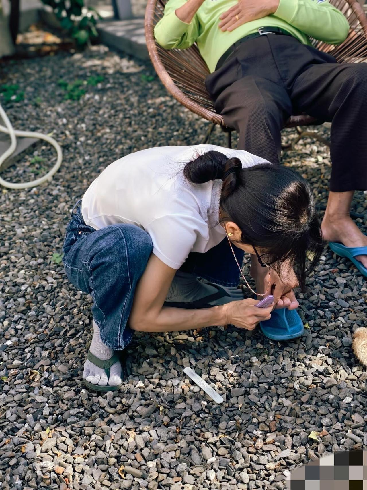 陈嘉桦回台湾省屏东县过年,曝光儿子近照,说明娱乐圈明星夫妻闪婚也有可能是长久地幸福地! 2月11日,陈嘉桦停下手中的工作,带着儿子回到了阔别已久的台湾省屏东县的老家。 陈嘉桦45岁了,打扮随意,头发扎了一下,戴了耳钉,穿着宽松的衬衫和牛仔裤,从背后看衣服皱皱巴巴,好像黄脸婆似的,完全没有明星气质。 她更是素面朝天,没有化妆,就这样与儿子回老家了,准备过年了。 陈嘉桦的儿子今年已经9岁了,五官和爸爸赖斯翔长得特别像,个子也长高了,只是牙齿不是很整齐,皮肤还有点黑,不过他挺纯真可爱,一看就是有钱人家出来的,骨子里面有一种自信。 陈嘉桦吃完饭以后还给旁边的亲人剪指甲,真的是一点都不摆架子,就和普通人差不多。 陈嘉桦的老家就是台湾省的屏东县,19岁时,也就是2000年,她成为s.h.e组合中的一员而出道。 因此,屏东县有陈嘉桦美好的青少年时光和童年时光,她在外面纵使经历各种繁华,但一到过节的时候还是喜欢回老家,寻找内心的安宁。 虽然陈嘉桦这次回来没有带老公赖斯翔,也可能带了没让他出镜,但从她的状态能看出来,她和赖斯翔当初认识两个月闪婚,是幸福地长久地!