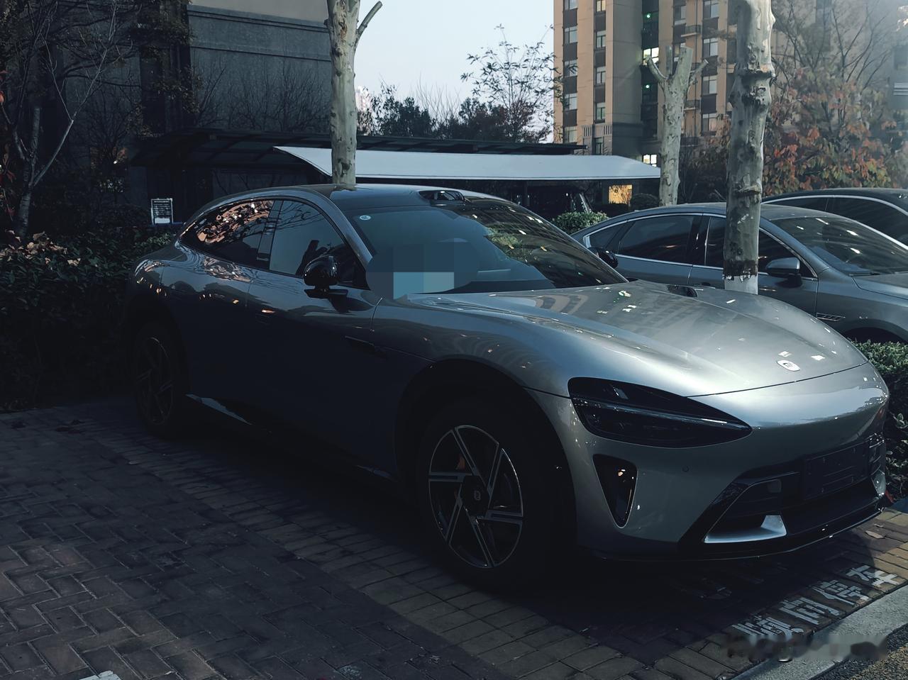 小区里面第一辆小米YU7,外观确实是抢眼! 外观来看,除了线条更加具有流线型之外,车头是真的长,可以想象前备箱尺寸会很大。 外观整体都非常帅,看了下细节做工都很出色。