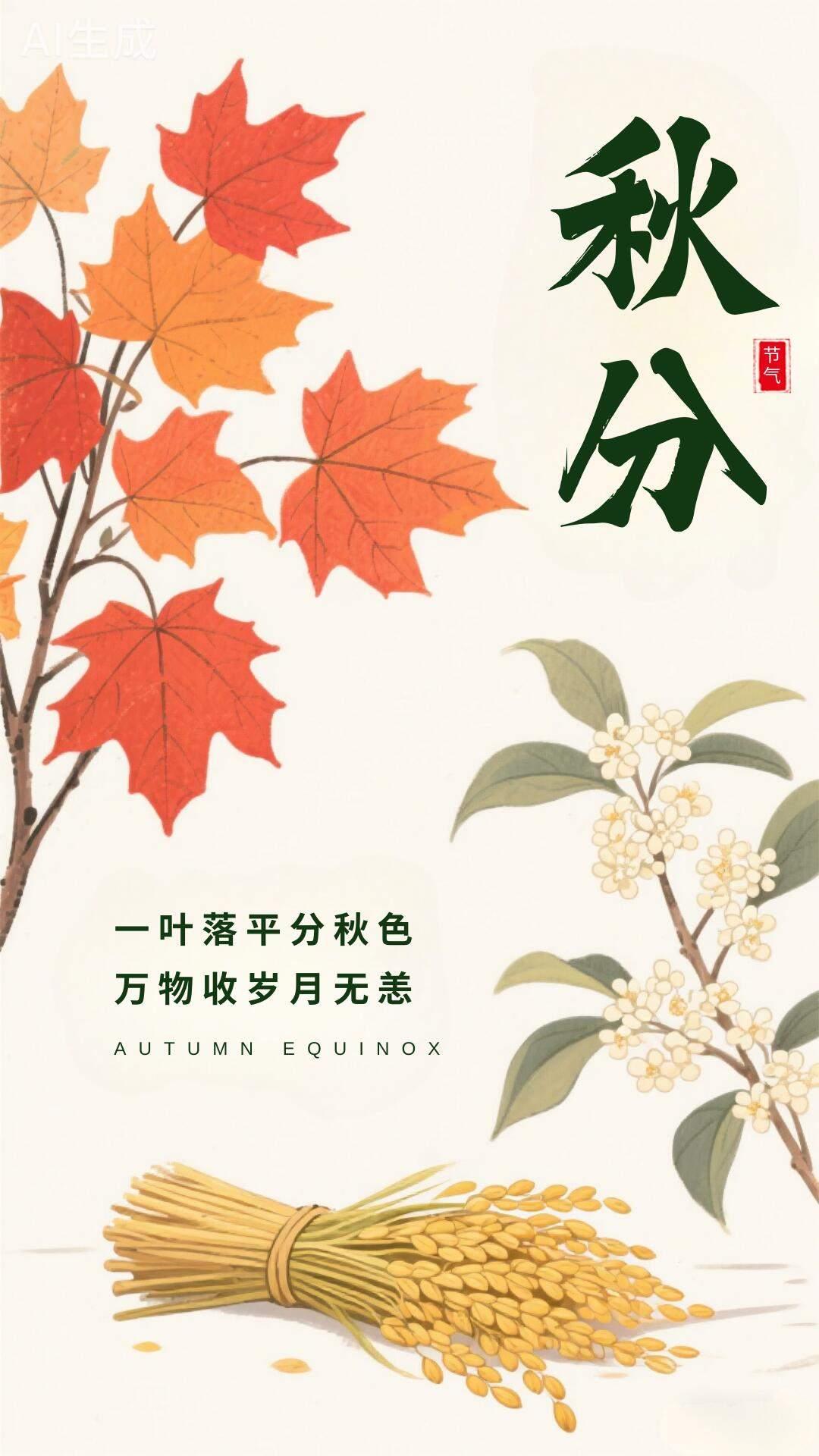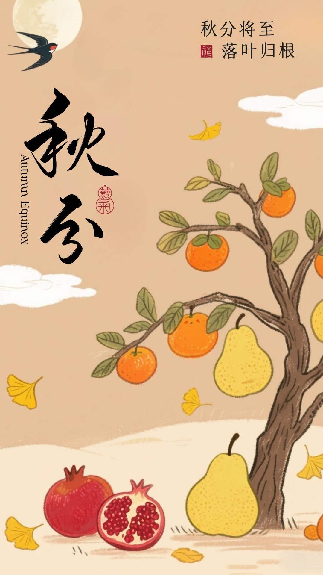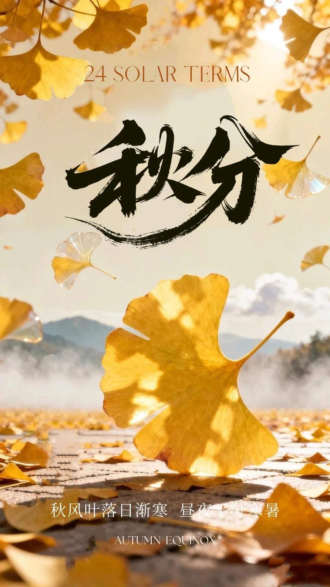 秋分手机壁纸~秋叶飘落平分秋色,万物静敛岁月安然