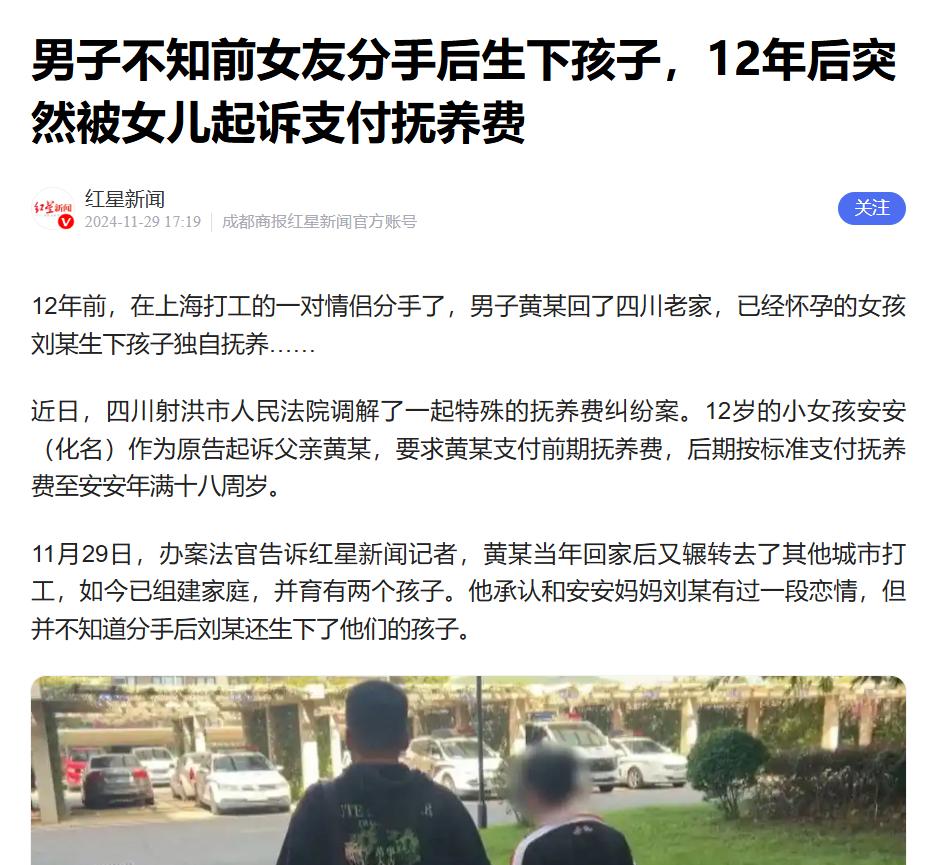 男子在上海打工期间,和一女子恋爱同居,男子返回四川老家时,让女子跟自己回老家生活,可女子不愿意,两人分手。万万没想到,12年后,女子突然将男子告上法庭,说自己曾给男子生下一个女儿,让男子支付女儿的抚养费,法院判了。 2012年那会儿,四川有个小伙子黄某(化名)当时在上海打工,年轻人在外漂泊,遇到个知冷知热的人不容易,他认识了一个叫刘某(化名)的姑娘,俩人挺聊得来,没多久就处起了对象,住到了一起。 日子过了一段时间,黄某想着还是回老家发展比较踏实,就跟刘某商量:“要不你跟我回四川吧,咱们以后就在那边过日子。” 可刘某是个有主见的人,不愿意背井离乡去那么远的地方,两人你来我往商量了好几次,谁也说服不了谁,最后没办法,只好和平分手。 这一别,两人就断了联系,黄某回了四川,刘某留在了上海,各自开始了自己的新生活。 黄某回老家后,生活也挺顺当,他辗转去了几个城市打工,后来遇到了现在的妻子,结了婚,还生了两个孩子,小日子过得安稳又平静。 他以为当年在上海那段感情早就成了陈年旧事,早就翻篇了,可他做梦都没想到,这颗埋了12年的雷,突然就炸了。 一通法院的电话,彻底打破了他平静的生活,原来是前女友刘某把他给告了,刘某在法庭上说,当年两人分手后没多久,她就发现自己怀孕了。 那时候两人已经断了联系,她性子倔,也没找黄某,硬是一个人把孩子生了下来,是个女儿,取名安安(化名)。 这12年来,她既当爹又当妈,一把屎一把尿地把孩子拉扯大,现在孩子大了,开销也大,她觉得自己一个人实在扛不住了,孩子既然有亲爹,这当爹的就得负责任,所以要求黄某支付这些年的抚养费,以及以后的费用。 黄某接到传票的时候,整个人都是懵的,脑瓜子嗡嗡的,他心想:“我都不知道我有这么个闺女,这12年也没人跟我通过气啊,怎么突然就冒出来个孩子让我负责?”这种天上掉下来的“喜当爹”,换谁一时半会也接受不了。 但刘某那边态度特别坚决,拿出一堆证据,非要给孩子讨个说法。 这事儿的核心就在于孩子到底是不是黄某的,法院为了弄清真相,依法安排了亲子鉴定,这科学手段一上,啥都清楚了,鉴定结果白纸黑字写着:黄某就是安安的生物学父亲,血缘关系跑不了,看着这结果,黄某虽然意外,但也只能认了。 法院审理这案子的时候,道理讲得特别明白,按照咱们国家的《民法典》,非婚生子女跟婚生子女那是平起平坐的,享有的权利一模一样,谁也不能歧视。 这爹妈虽然没结婚,或者分手了,但孩子是无辜的,不直接带孩子的那一方,不管是爹还是妈,都得掏抚养费,一直掏到孩子满18岁成年为止。 这是法律规定的义务,不管你们当初是因为啥分的手,也不管这时间过去多久了,这责任你是赖不掉的。 法官也是个通情达理的人,考虑到黄某现在已经有了新家庭,还得养活两个孩子,经济压力也不小,同时也体谅刘某这12年一个人带孩子的艰辛。于是组织双方坐下来好好调解。 最后,双方达成了一致。黄某承认这个女儿,也愿意承担起当父亲的责任,他同意支付这些年欠下的抚养费,并且以后每个月按时给钱,一直供到女儿满18岁。 这场跨越了12年的恩怨纠葛,总算是画上了一个句号,黄某从一开始的一脸懵圈到最后主动担责,也算是弥补了对这从未谋面的女儿的一份亏欠,刘某辛苦带娃这么多年,也终于通过法律手段,给孩子的未来争到了一份保障。 这事其实给咱们所有人都提了个醒,谈恋爱虽然自由,法律管不着你们分分合合,但只要孩子生下来了,这非婚生子女的权益可是受法律严密保护的。 大人的感情账算不清没关系,别让孩子来买单,不管结没结婚,不管还在不在一起,只要是亲生的,这养孩子的责任就得扛起来,这是法律的底线,也是做人最起码的良心。 对此你怎么看? 信源:红星新闻