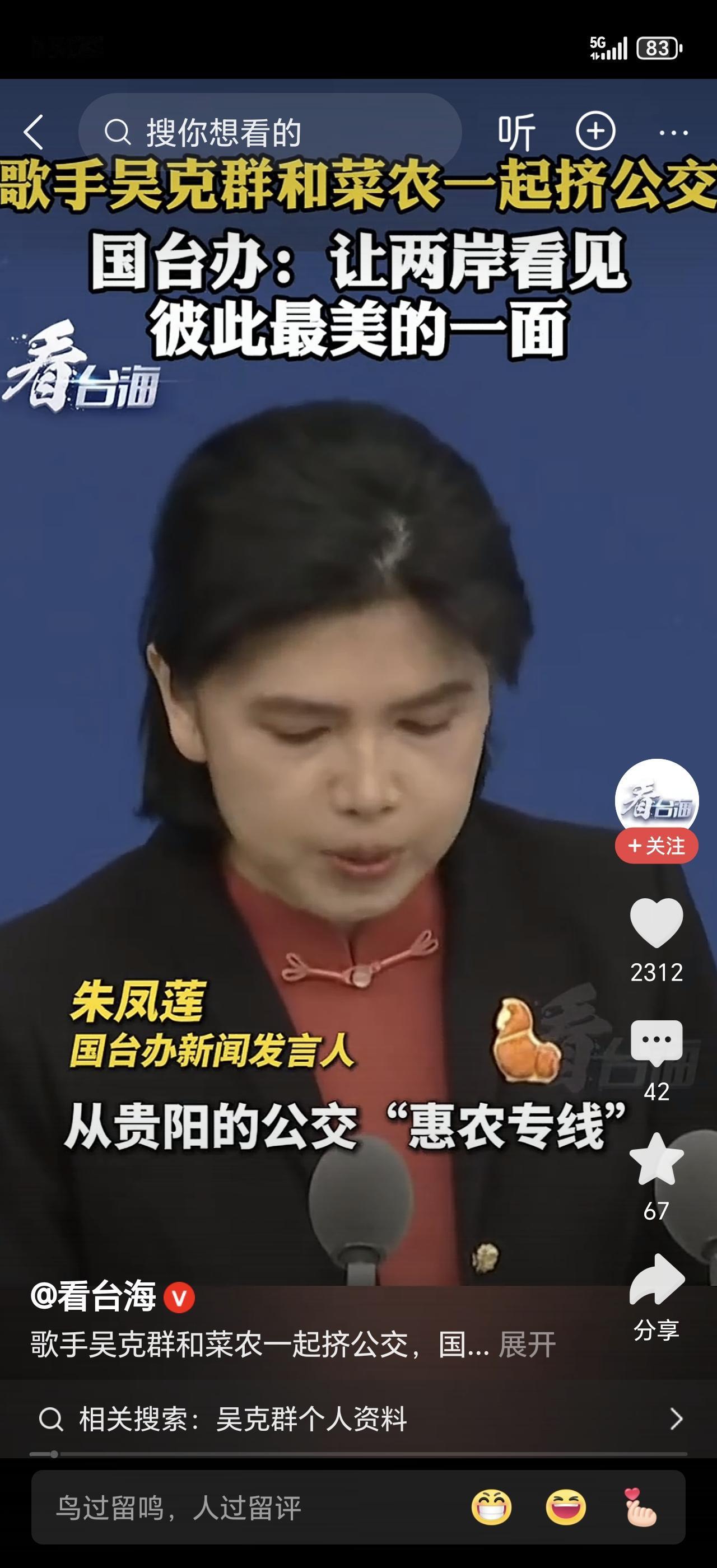 太暖了!台湾艺人吴克群做了一件事,不仅帮云南农民卖掉了3万斤滞销蔬菜,还获得了国台办的点赞! 近期,云南一些地区的农民遇到了蔬菜滞销的难题,辛苦种出的菜眼看要烂在地里。这时,台湾歌手吴克群伸出了援手。他通过自己的影响力和直播等方式,积极帮忙推销。 短短时间内,3万斤蔬菜成功售出,解了农民的燃眉之急。这件事不仅是简单的助农,更搭起了一座温暖的桥。 在最近的国台办例行记者会上,发言人特别提到了这件事。他表示,吴克群的善举体现了两岸同胞血浓于水的亲情。大陆方面一直欢迎并支持台湾同胞参与这样的公益活动。 发言人的回应很暖心。他强调,这样的互助合作生动说明了两岸是一家人,我们愿意在各方面为台湾同胞提供更多发展的机会和空间,共创美好未来。 一件助农小事,折射出血脉相连的大情感。只要彼此心怀善意,互帮互助,就能让心贴得更近。 你如何看待这类跨越海峡的爱心互助?你还知道哪些两岸同胞互帮互助的暖心故事?欢迎在评论区分享!吴克群出场费 瓷都吴克群 吴克群合唱 吴克群清唱 周克群