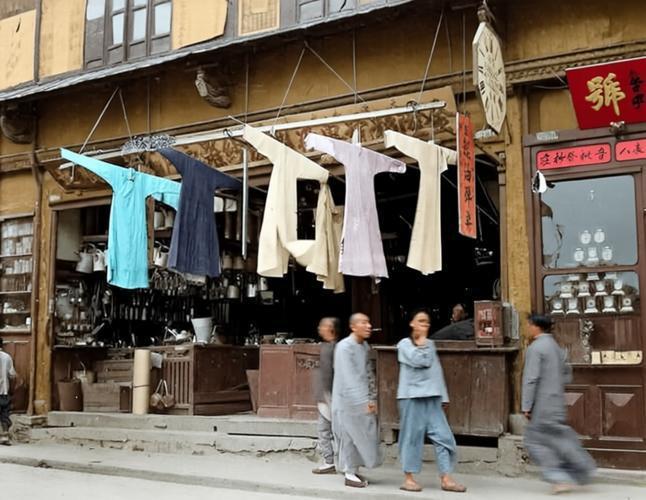 晚清,上海街边一家成衣店,店门口的横梁上悬挂着数件浆洗挺括的长衫与褂子,在微风中轻晃;店内货架上整齐码放着布料与杂货,几位行人穿着长衫从店前匆匆走过。 与过去“量体裁衣”的定制模式不同,晚清上海的成衣店开始批量售卖成衣,让普通市民也能快速购置新衣。1843年上海开埠后,这座城市迅速从江南县城蜕变为远东商埠,商业的繁荣带动了服饰行业的变革。过去,普通百姓的衣物多由家中妇女手工缝制,或找裁缝定制;而开埠后,城市人口激增,生活节奏加快,成衣店凭借便捷、价廉的优势,逐渐成为市民购衣的首选。