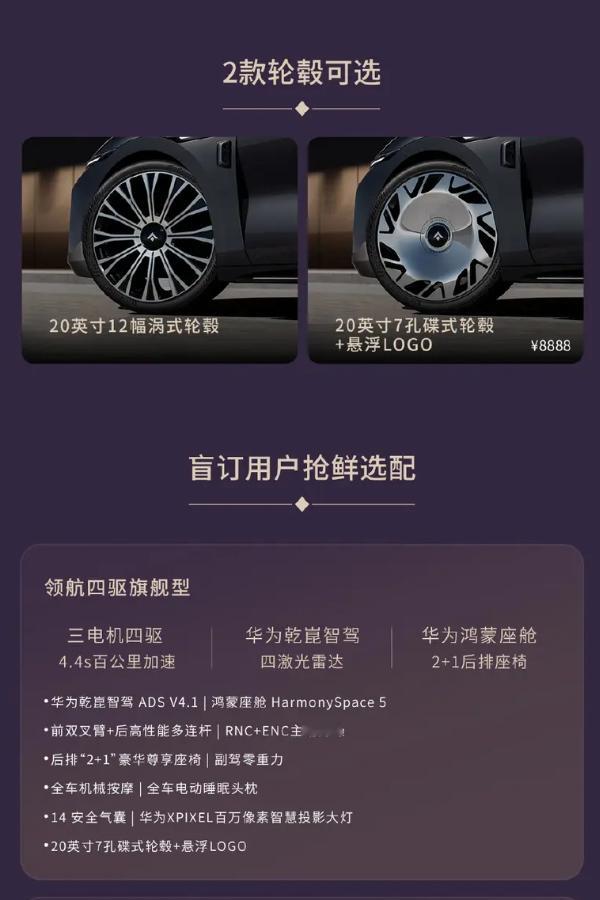 车若初见 昊铂A800盲订选配开始,提供四款车型,六款外观颜色、三款内饰颜色,两种轮毂样式。帮大家出出主意,仅供参考,年轻的话,咱就云幕紫外观,反正省5000元,羊毛该薅薅不拘着,内饰选多佛白崖,里外一搭绝绝子,轮毂就免费的就行,大饼圈真的不搭;您要是没那么大个性化需求,那就白外黑外,加上黑色内饰,悬浮LOGO的轮毂给勾上,保值率也在线。配置的话,看个人需求吧,划掉最低配,其他都可以~问题来了,这款车您觉得会定什么价格,评论区大家猜猜。